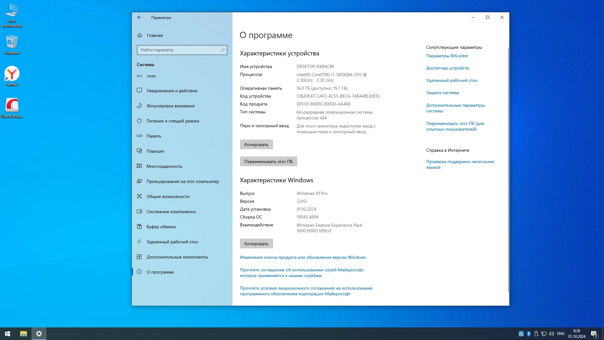 Windows 10 Pro Русская 22H2 19045.4894 Stable