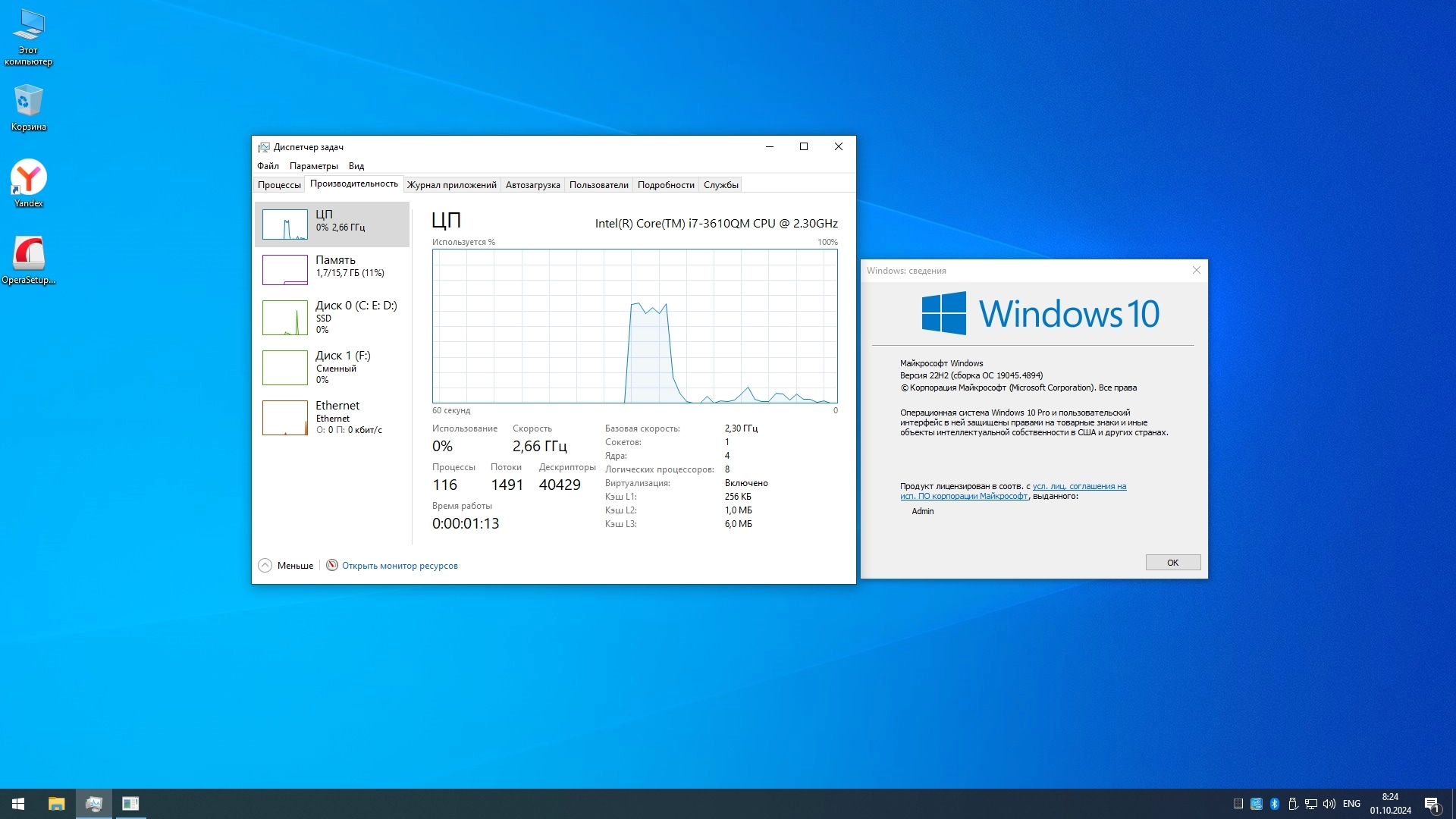 Windows 10 Pro Русская, версия 22H2 Build 19045.4894 Сборка без балласта Процессор с частотой 1 ГГц или выше (включительно). ОЗУ: 1 ГБ для систем 32-бит, 2 ГБ для систем 64-бит. Место на жестком диске: 16 ГБ для 32-битных систем, 32 ГБ для 64-битных