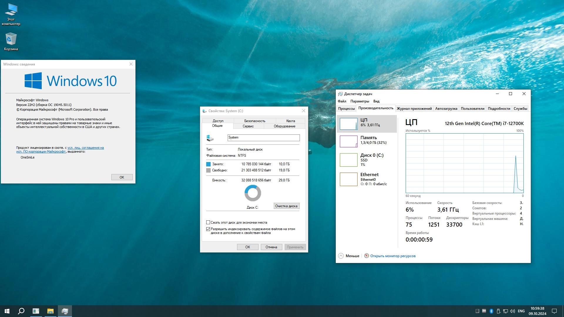 Скриншоты Windows 10 Pro Русская by OneSmiLe 22H2 build 19045.5011 торрент: