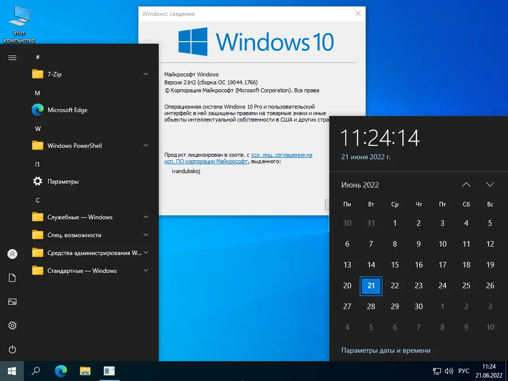 - Скачайте: W10_PRO_VL_21H2_19044.1766_X64_BY_IVANDUBSKOJ_21.06.2022.iso