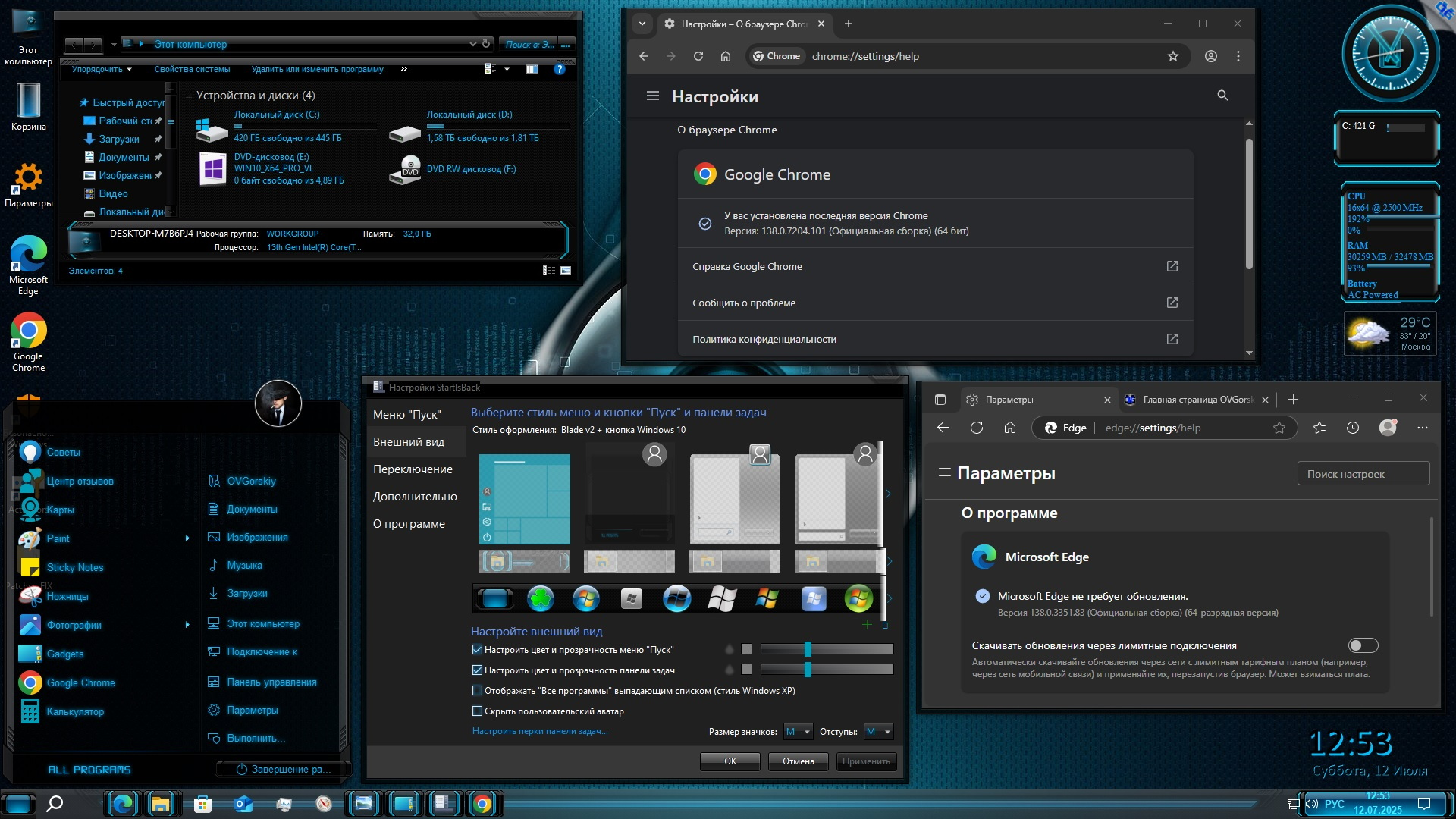 - Автоматически устанавливаемые приложения в процессе установки ОС: • Microsoft Edge 138.0.3351.83 Enter., обновление до актуальной версии Edge;