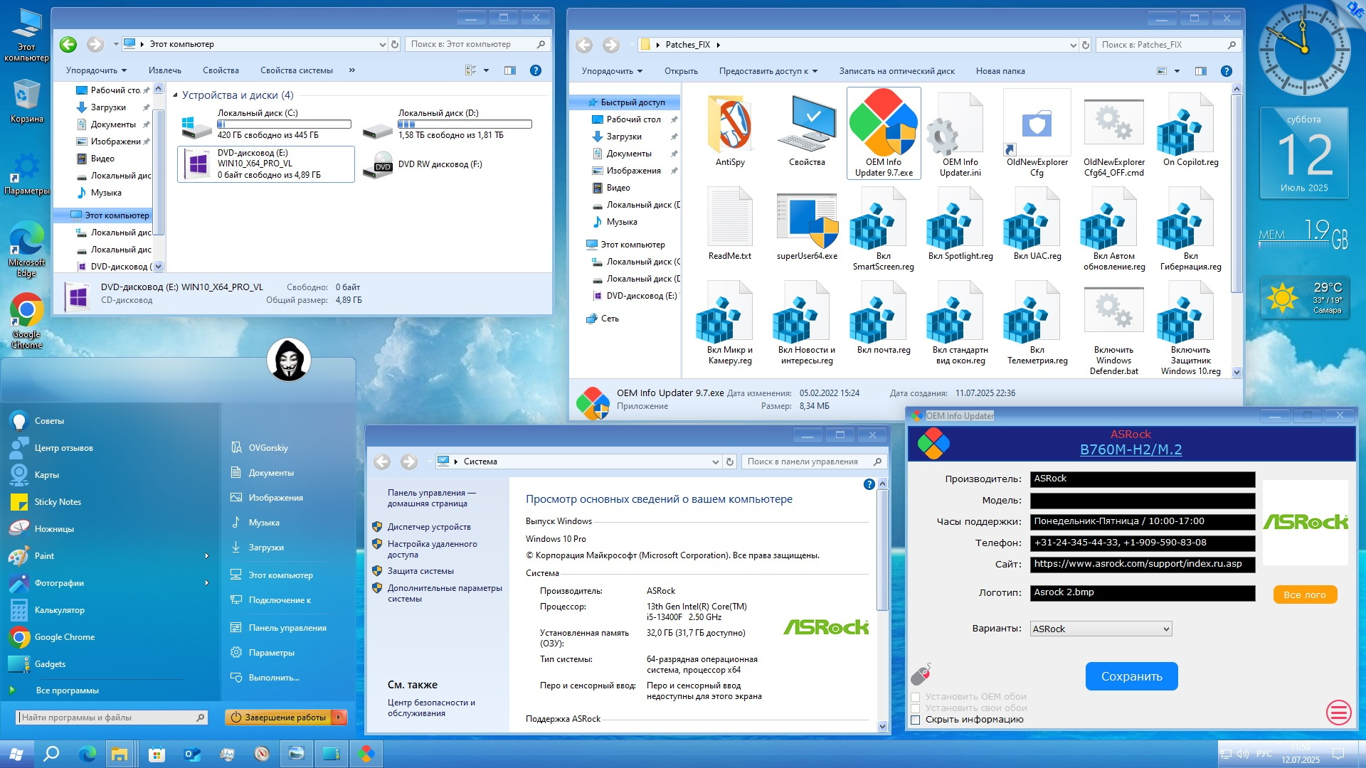 Версия 22H2_19045.6093 Сборка на основе оригинального русского образа, с обновлениями по Июль 2025 года, операционной системы