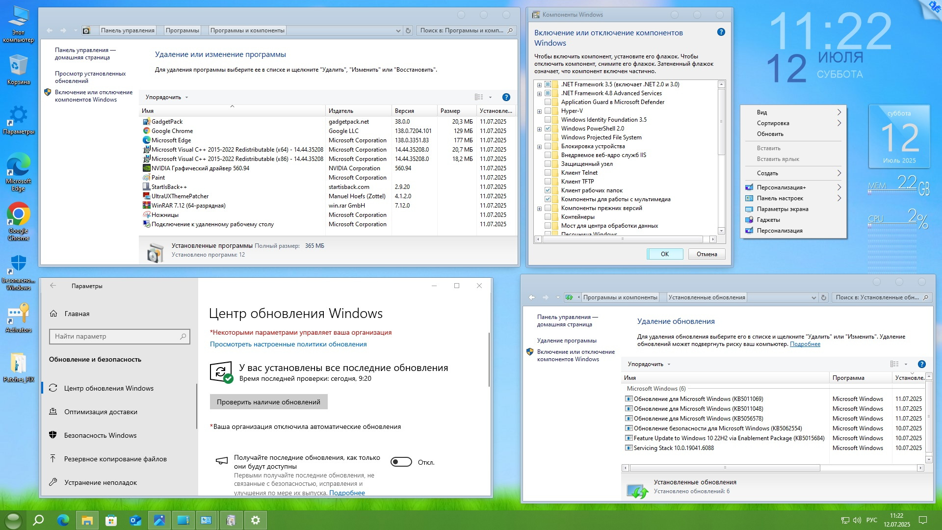Интегрированы: накопительное обновление ОС по 9 июля 2025 г.;