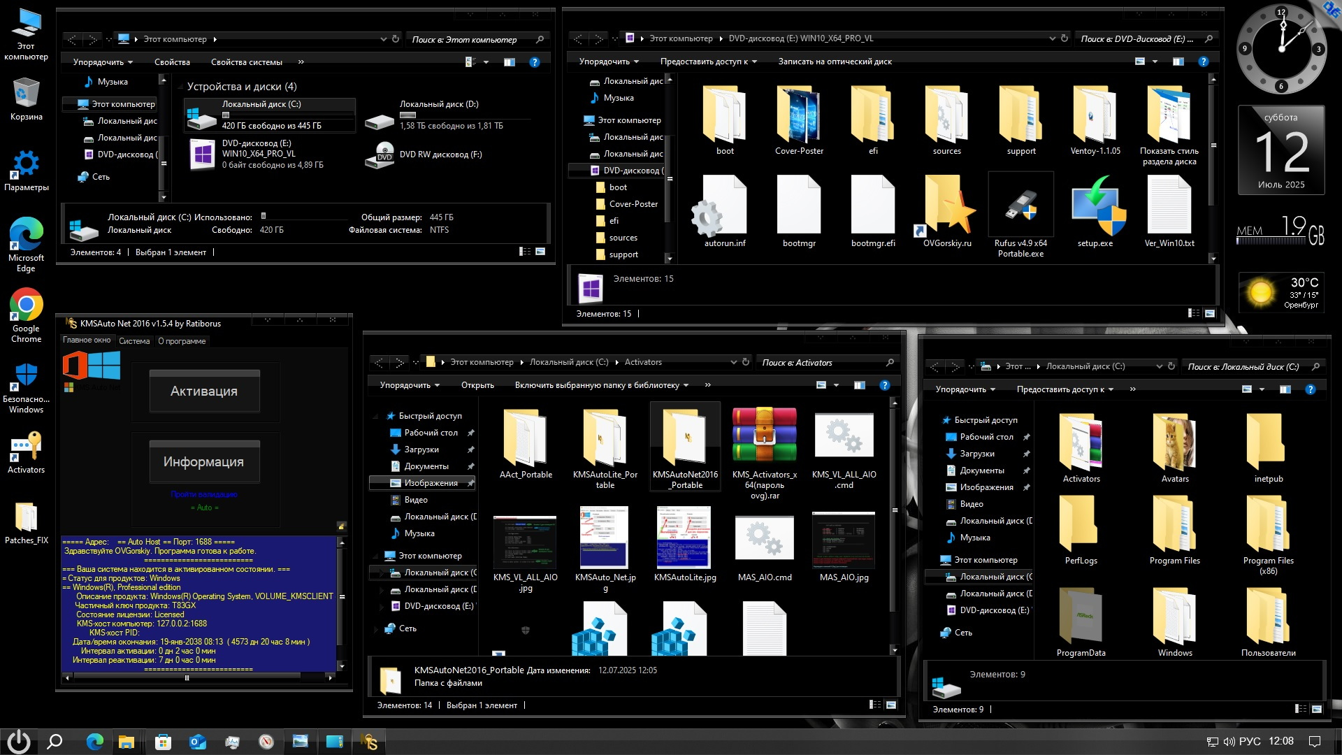 Процессор: Не менее 1 ГГц или SoC; - ОЗУ: 2 ГБ (рекомендуется 4 ГБ и более); - Место на жёстком диске: 25 ГБ (рекомендуется SSD 36 ГБ и более); - Видеокарта: DirectX версии 9 или выше с драйвером WDDM 1.0; - Дисплей: 800 x 600 точек. Windows 10 Pro VL x64 22H2 RU by OVGorskiy 07.2025 торрент, изменения: Сборка предназначена для тех, кто желает оформить систему на свой вкус.