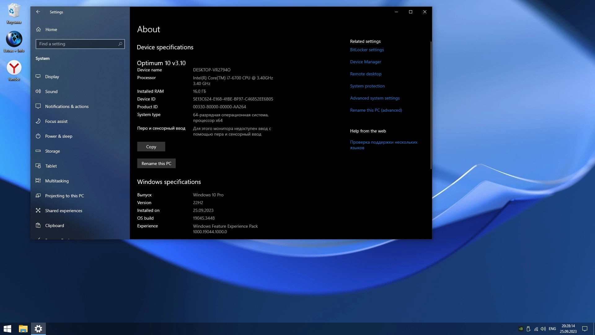 - Установлены кодеки HEVC, Yandex браузер и дополнительные улучшения.