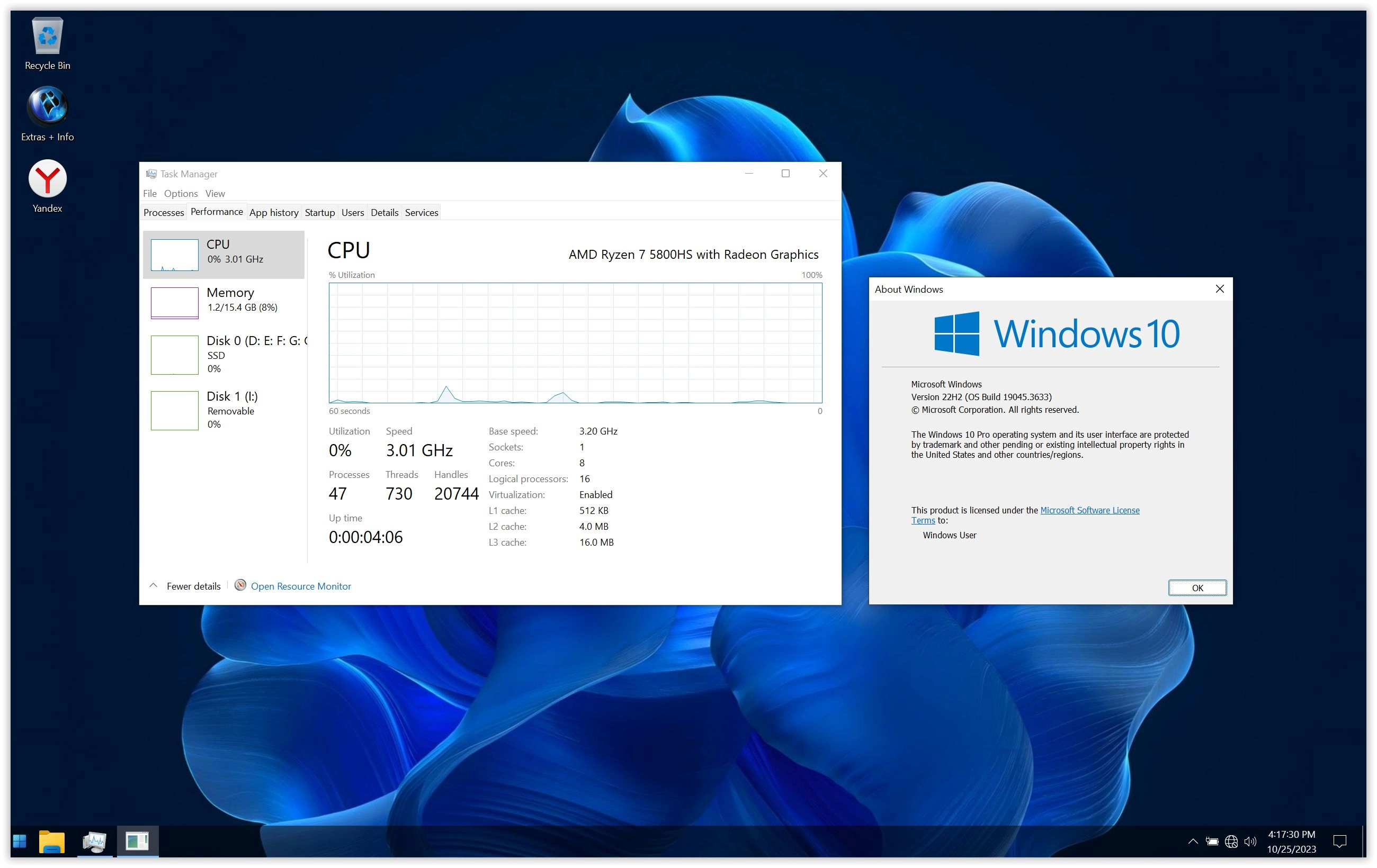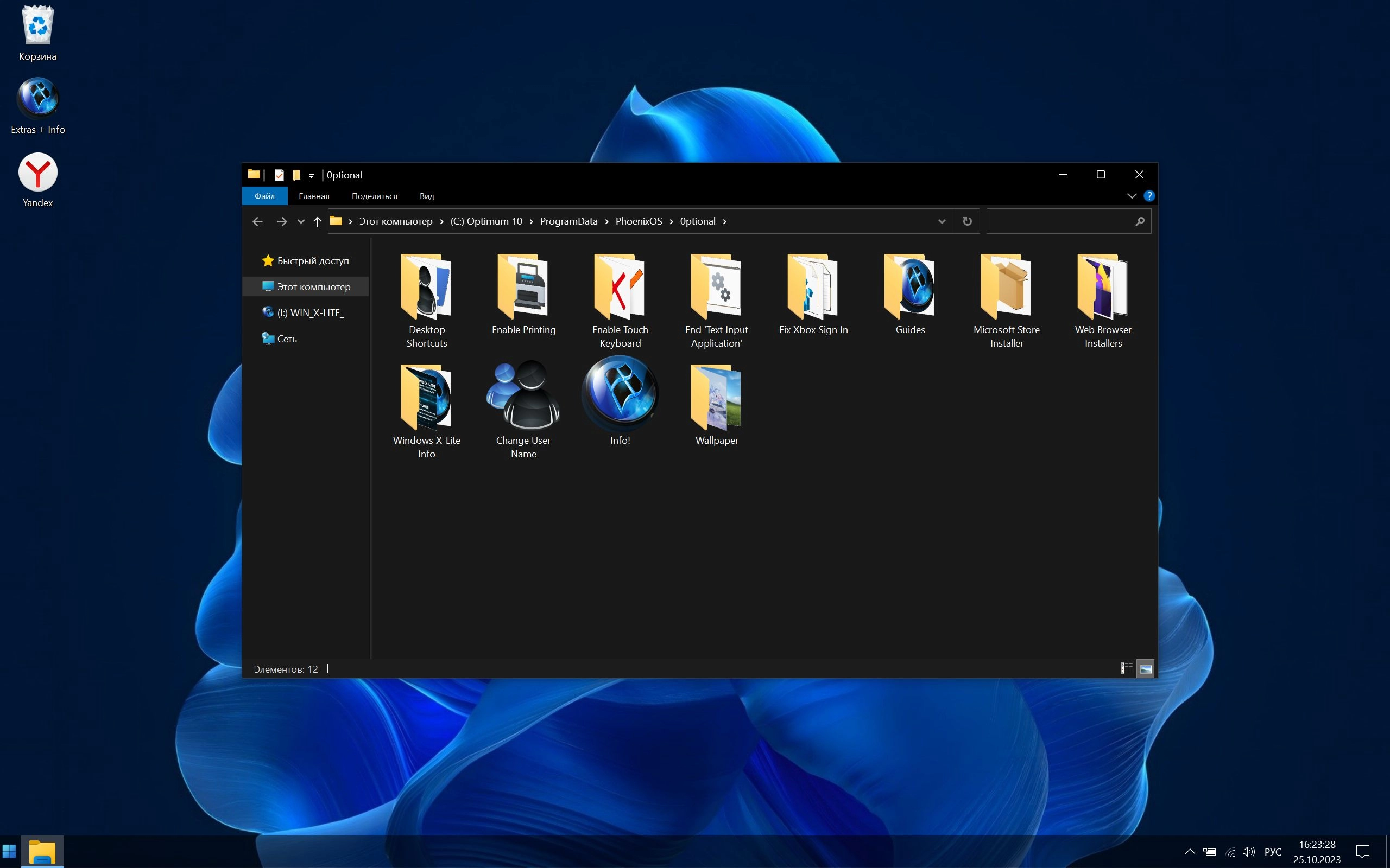 Windows 10 Pro X-Lite 'Optimum 10' v4.11 (19045.3633) включает в себя полное обновление, автоматические обновления приостановлены до 3000 года, виртуальную память и дополнительную прозрачность системы.