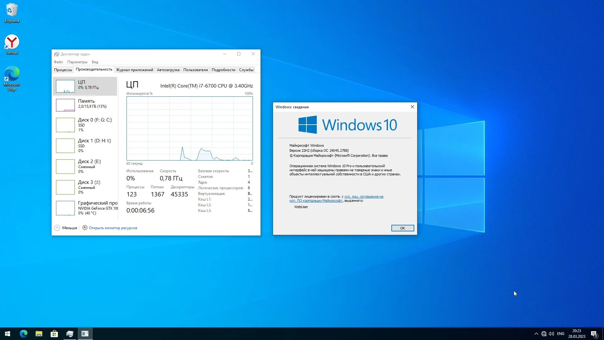 Windows 10 Pro x64 22H2 19045.2788 без защитника и приложений Сборка актуальная для систем на x64-процессоре, частотой более 1 ГГц или SoC с драйверами WDDM 1.0. Система максимально аккуратно удаляется стандартные приложения: Cortana Windows SmartScreen