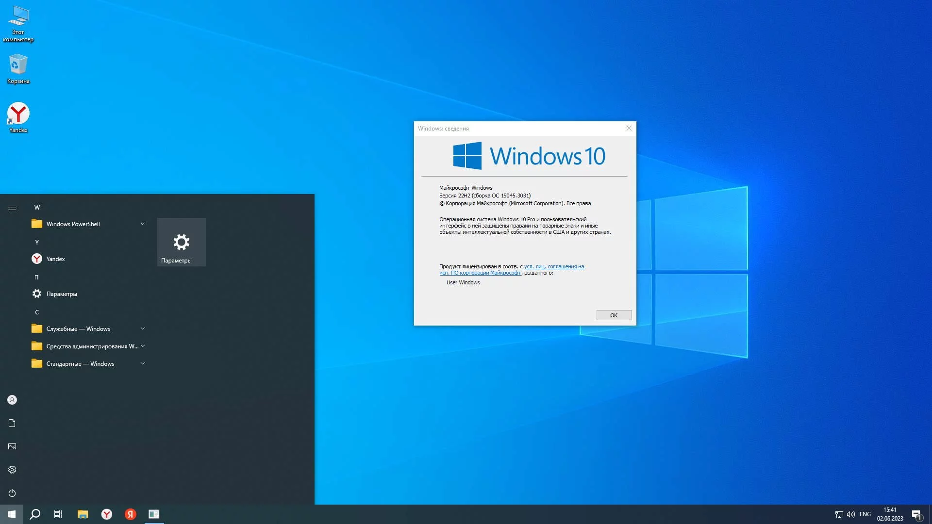 Версия Windows 10 Pro x64 22H2 без Windows Update, защитного системы и дополнений.