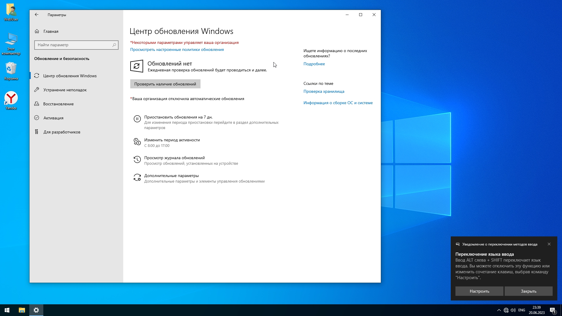 - Сборку полуавтоматически включает обновления устанавливаются в ручном режиме, рекомендуемая установка.