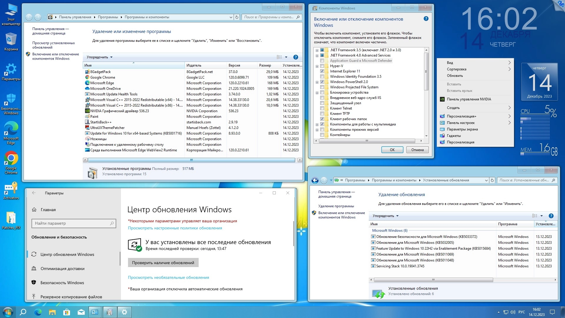 - Системные требования: Интегрированы: - обновления по 12 декабря 2023 г. (накопительные); - компоненты .NetFramework 4.8.1 с обновлениями по декабрь 2023 г.; - дополнительные темы оформления, фоновые изображения, гаджеты, аватарки пользователя.