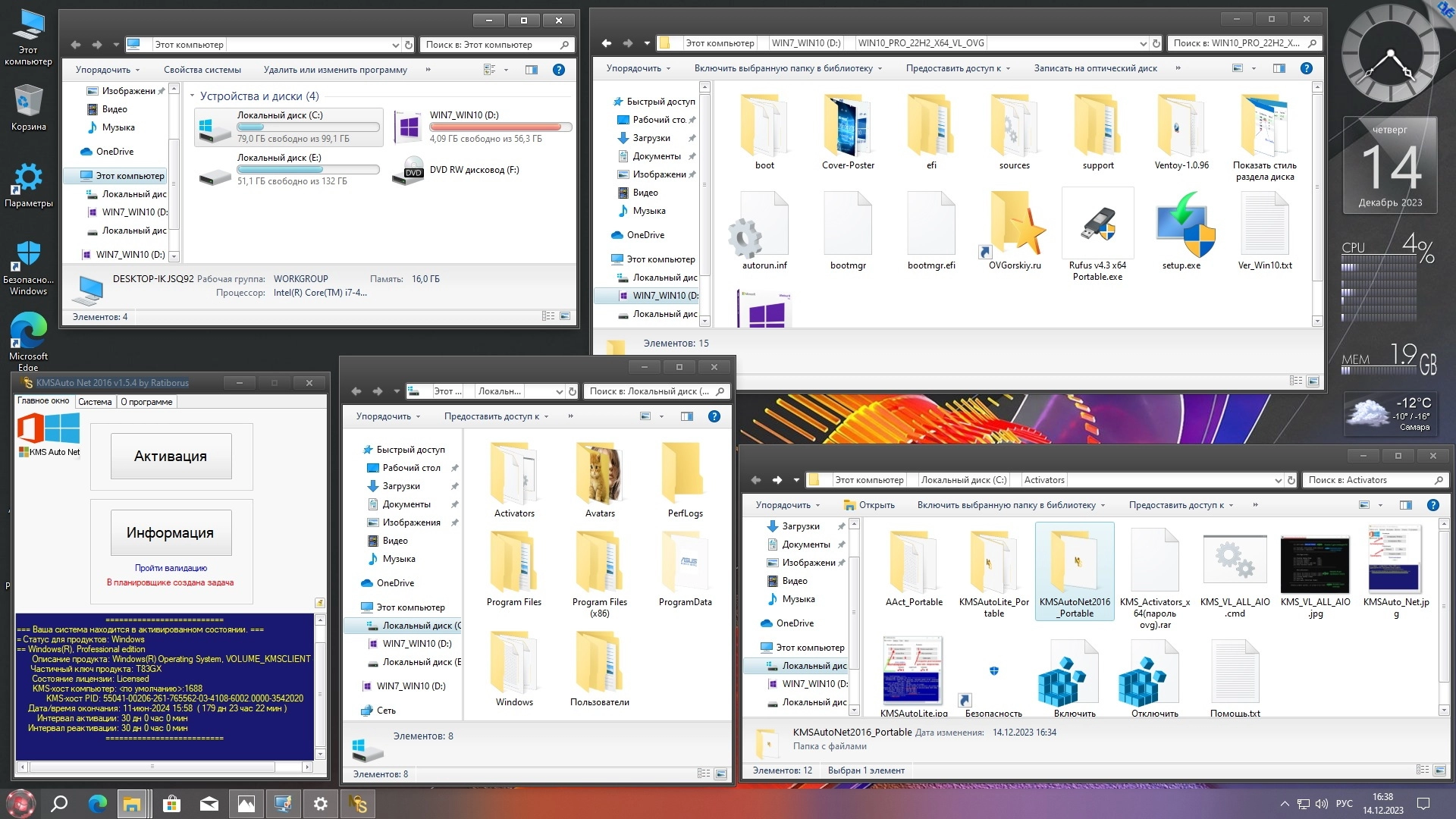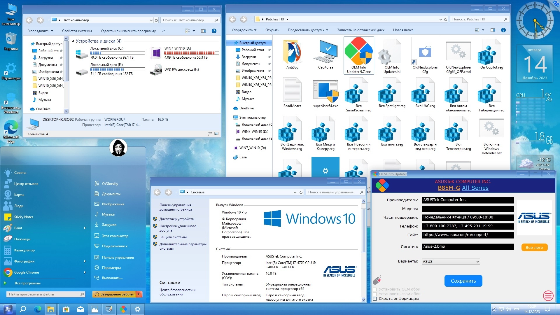 Дополнительная информация о Windows 10 Pro x64 22H2 RU by OVGorskiy 12.2023 торрент: