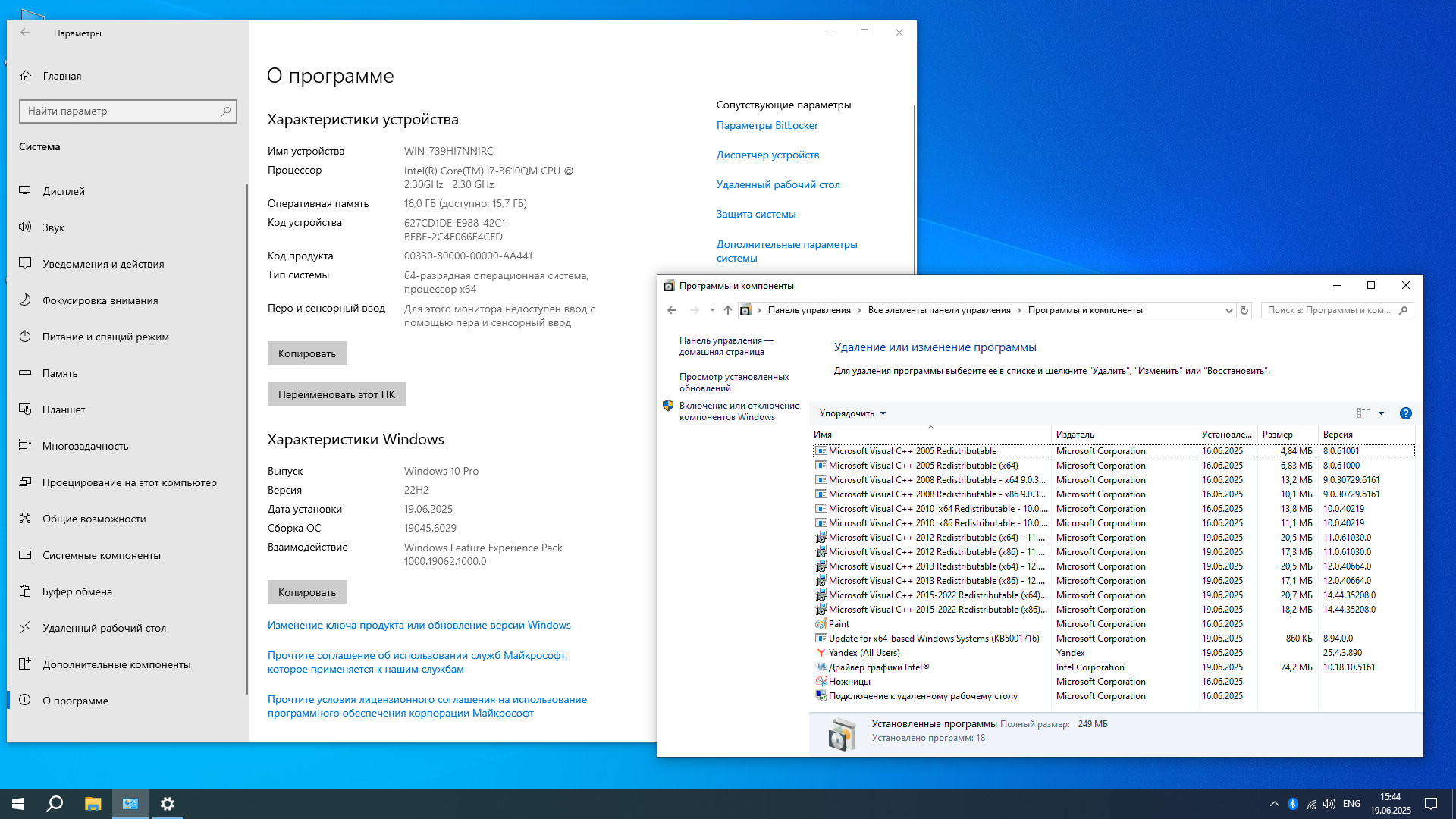 Версия 22Н2, исправленная сборка Windows 10 с обновлениями по Июнь 2025 года, отключенной телеметрией, без бесполезных служб и автоматической установкой (только выбор раздела). Компьютер для системы: