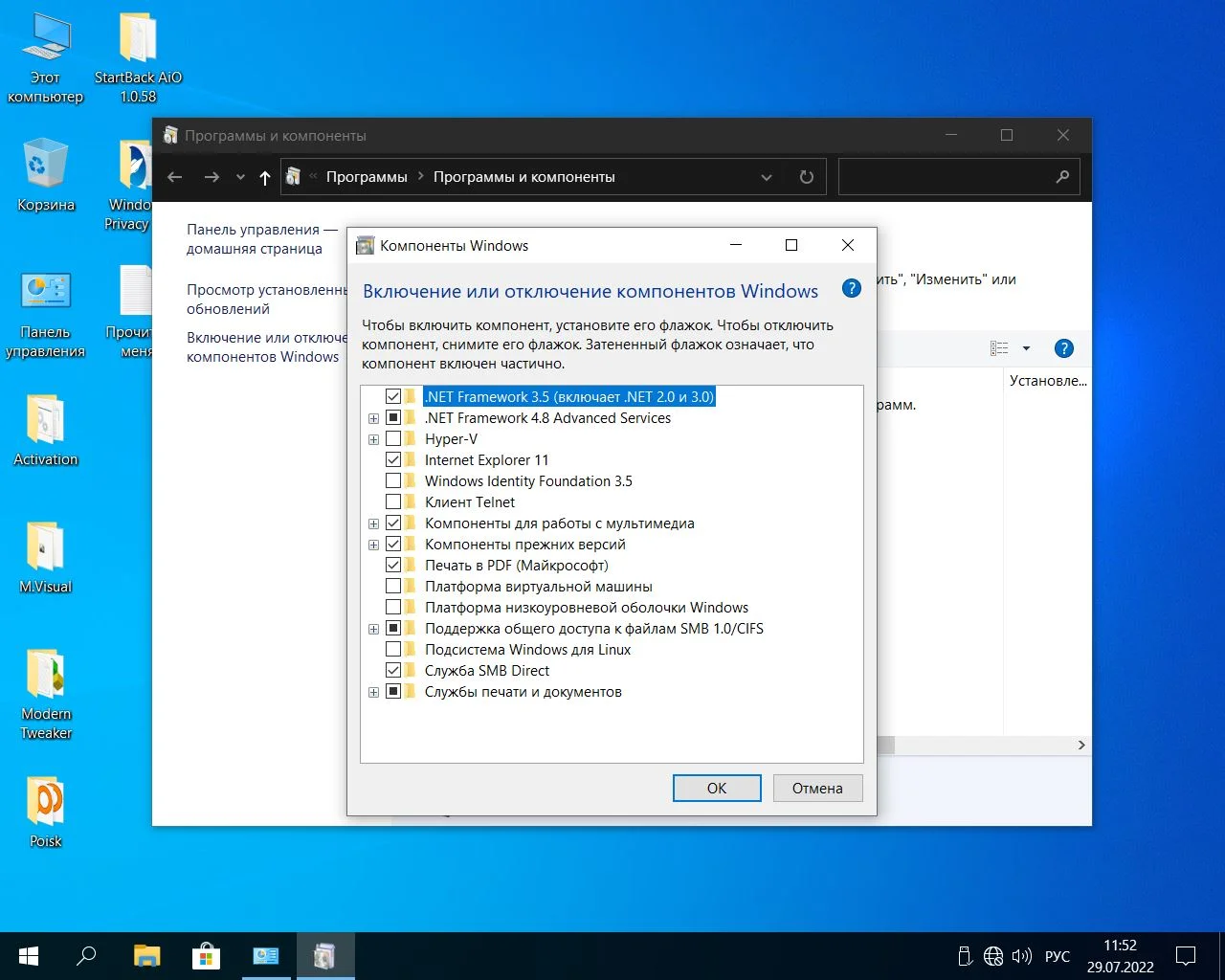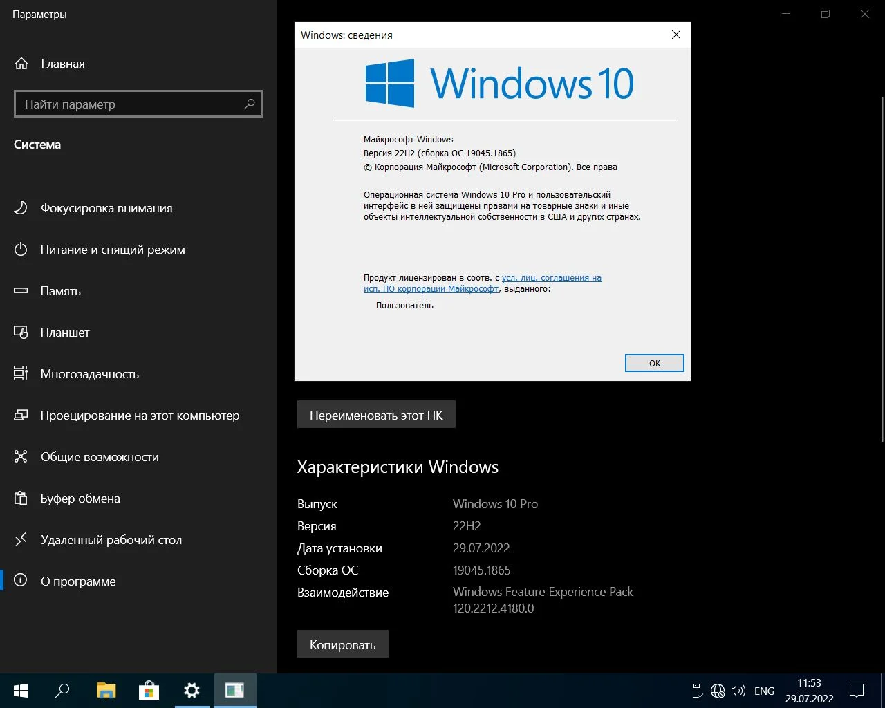 Сборка основана на официальном образе Microsoft: 19045.1865.220719-1621.22H2_RELEASE_SVC_PROD3_CLIENTMULTI_X64FRE_RU-RU.ISO