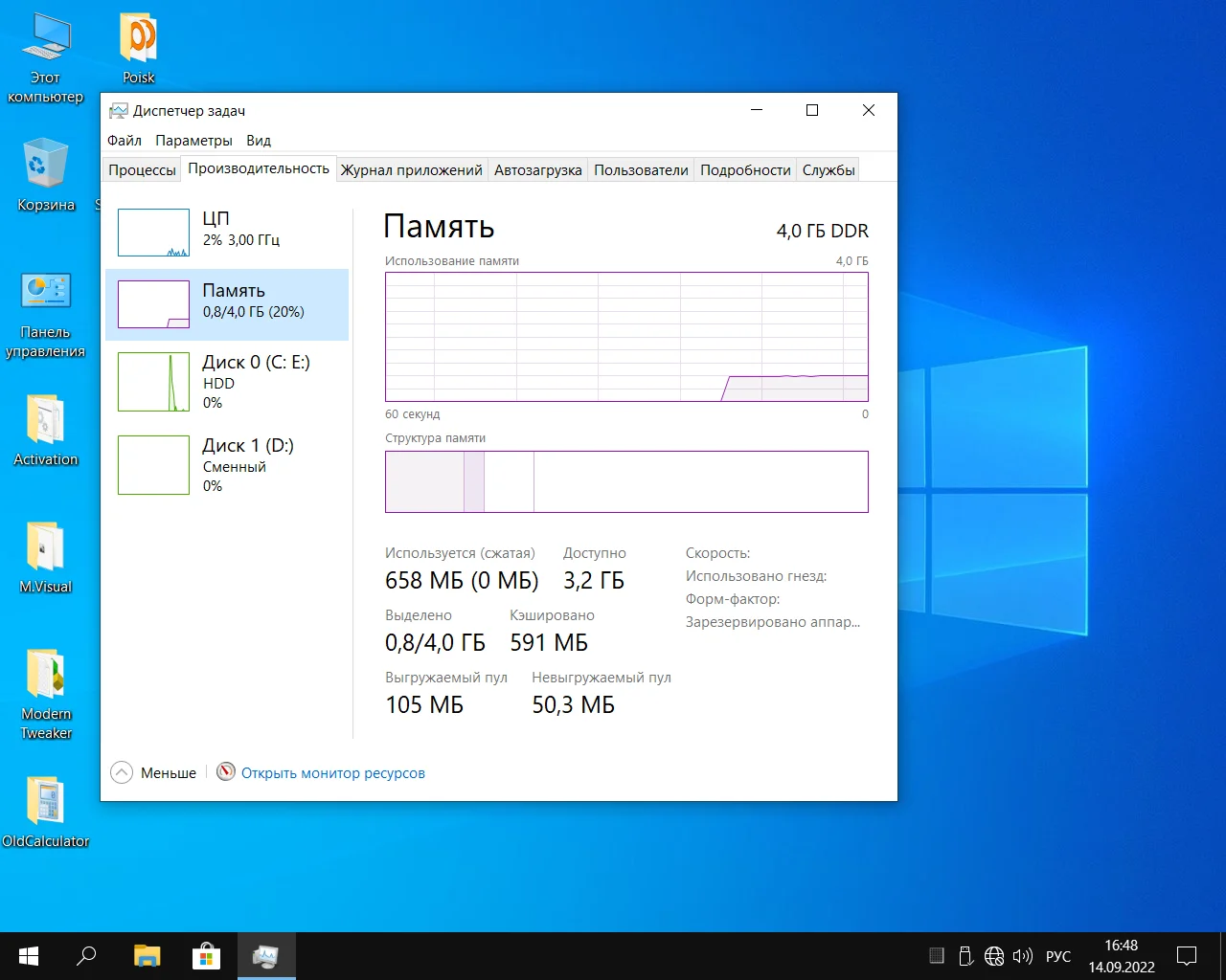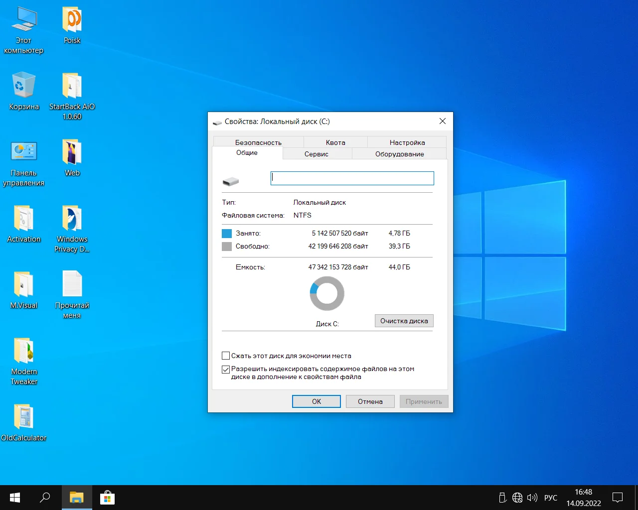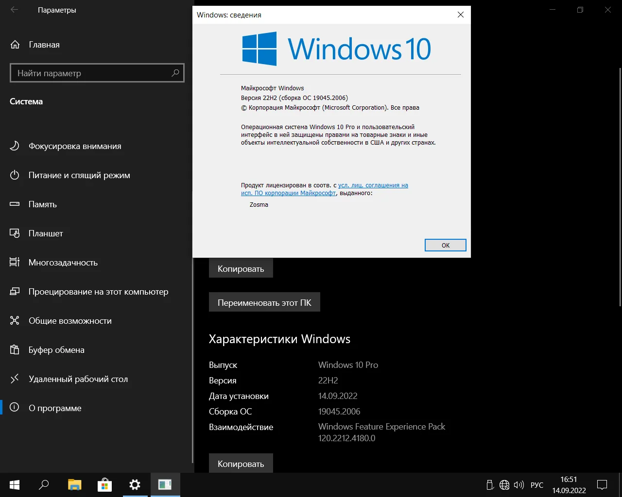 Windows 10 Pro x64 Lite 22H2 build 19045.2006 by Zosma (torrent): Отключены Центра уведомлений о проблемах с безопасностью, рекламный идентификатор, быстрый запуск и гибернация, размытие экрана приветствия, бесполезные службы, отключено быстрый запуск и включение Windows и программ из автозагрузки. Компьютер: x64-разрядный процессор 1 ГГц с ОЗУ 2 ГБ, жесткий диск объемом 20 ГБ. Разрешение экрана 800x600 и выше. Значки в области уведомлений, включено классический «Просмотр фотографий Windows», на исполняемых файлах с "Щитами", отключен