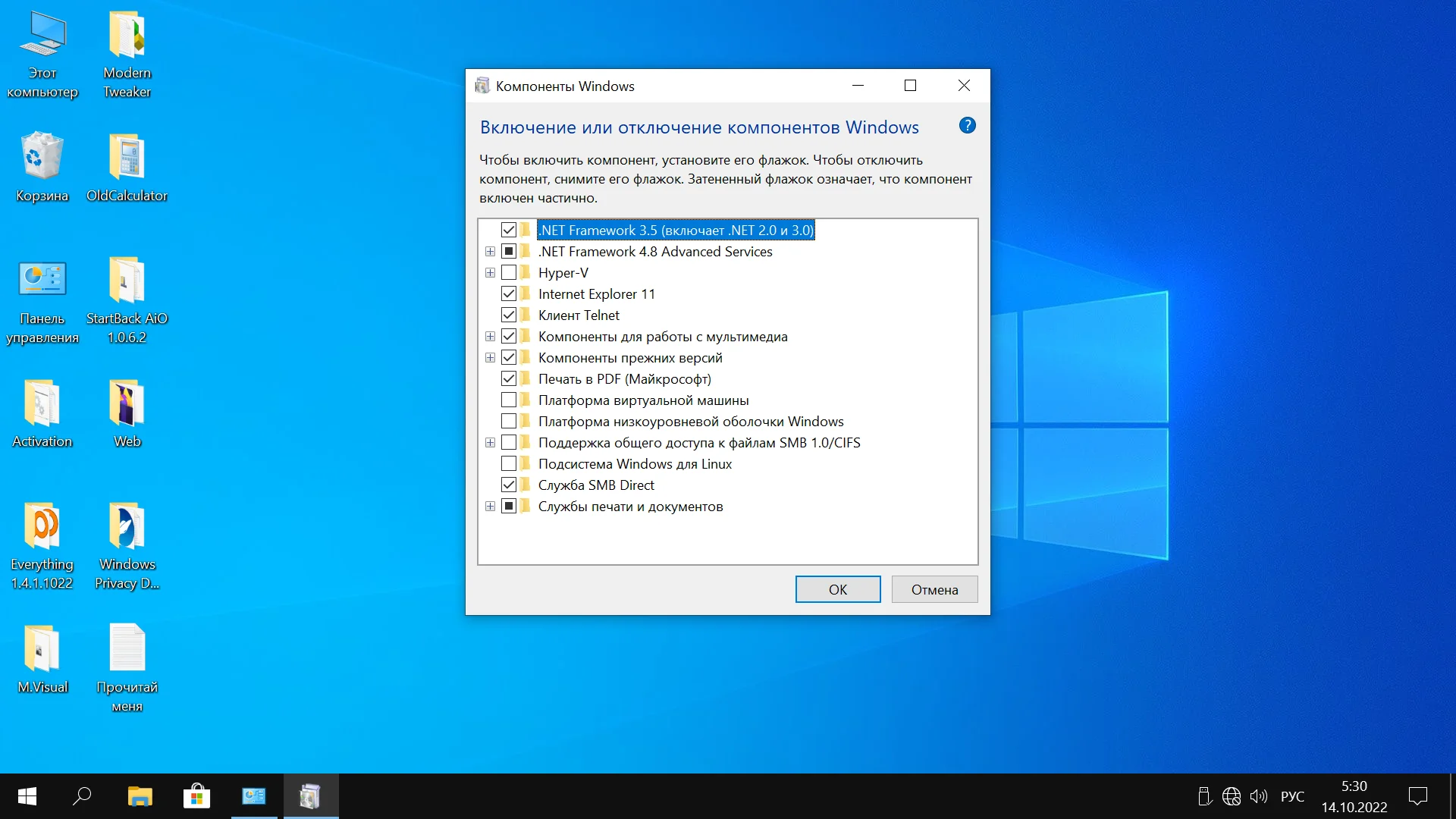 - Отключены сообщения от Центра уведомлений о проблемах с безопасностью
