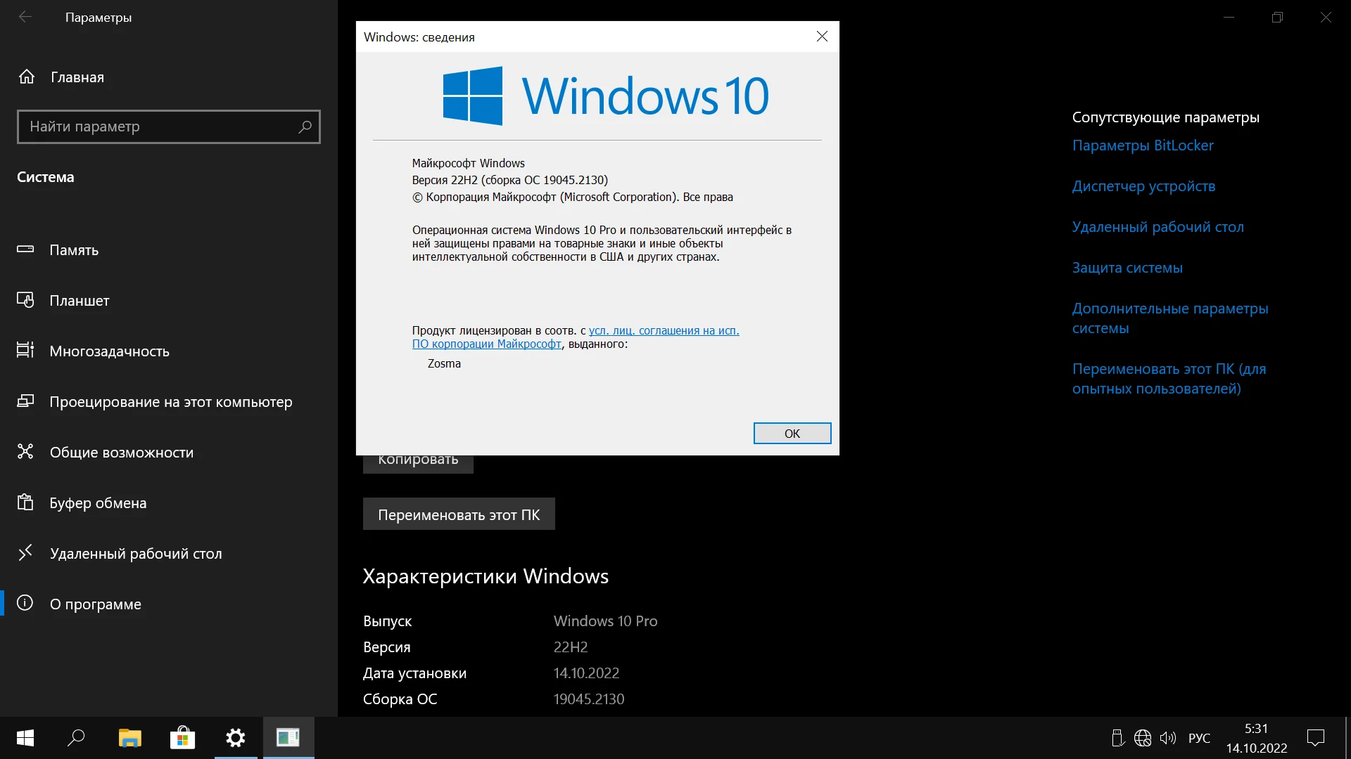 Windows 10 Pro x64 Lite 22H2 build 19045.2130 by Zosma