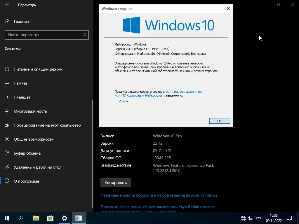 Windows 10 Pro x64 Lite 22H2 build 19045.2251