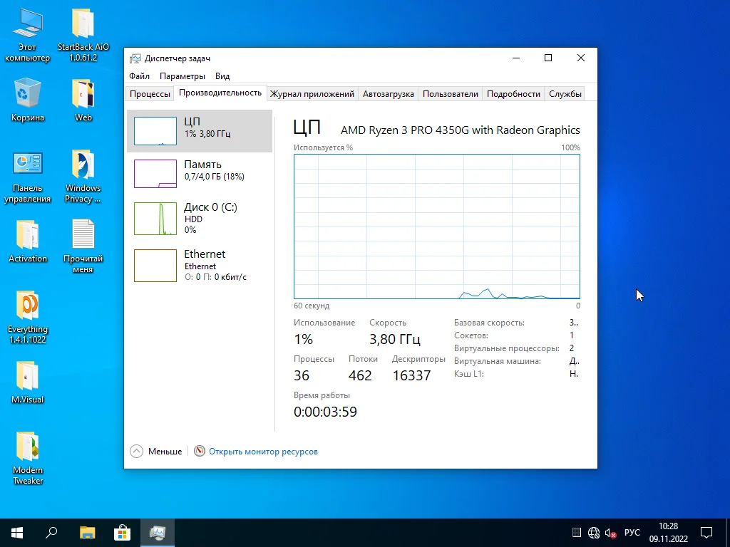 - Применены различные твики для ускорения работы оперативной памяти, оптимизации работы процессора и диска.