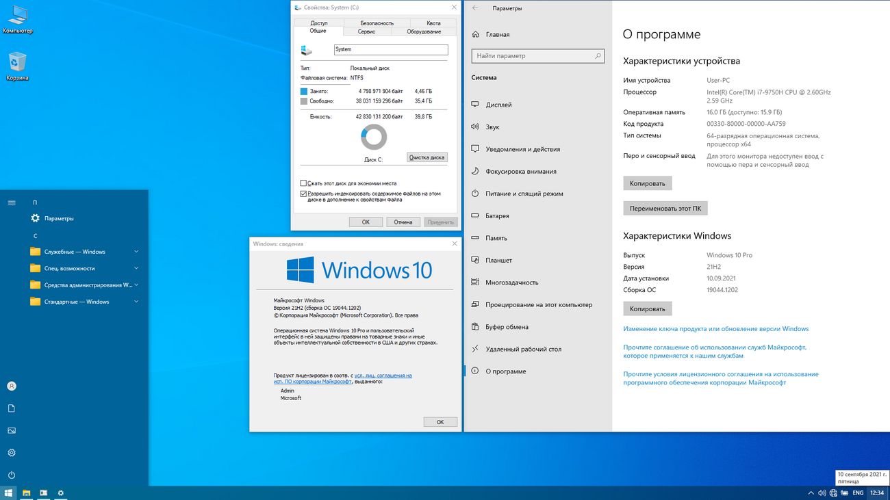 Скриншоты Windows 10 Professional 19044.1202 x64 by Tatata торрент: