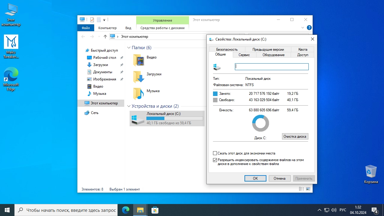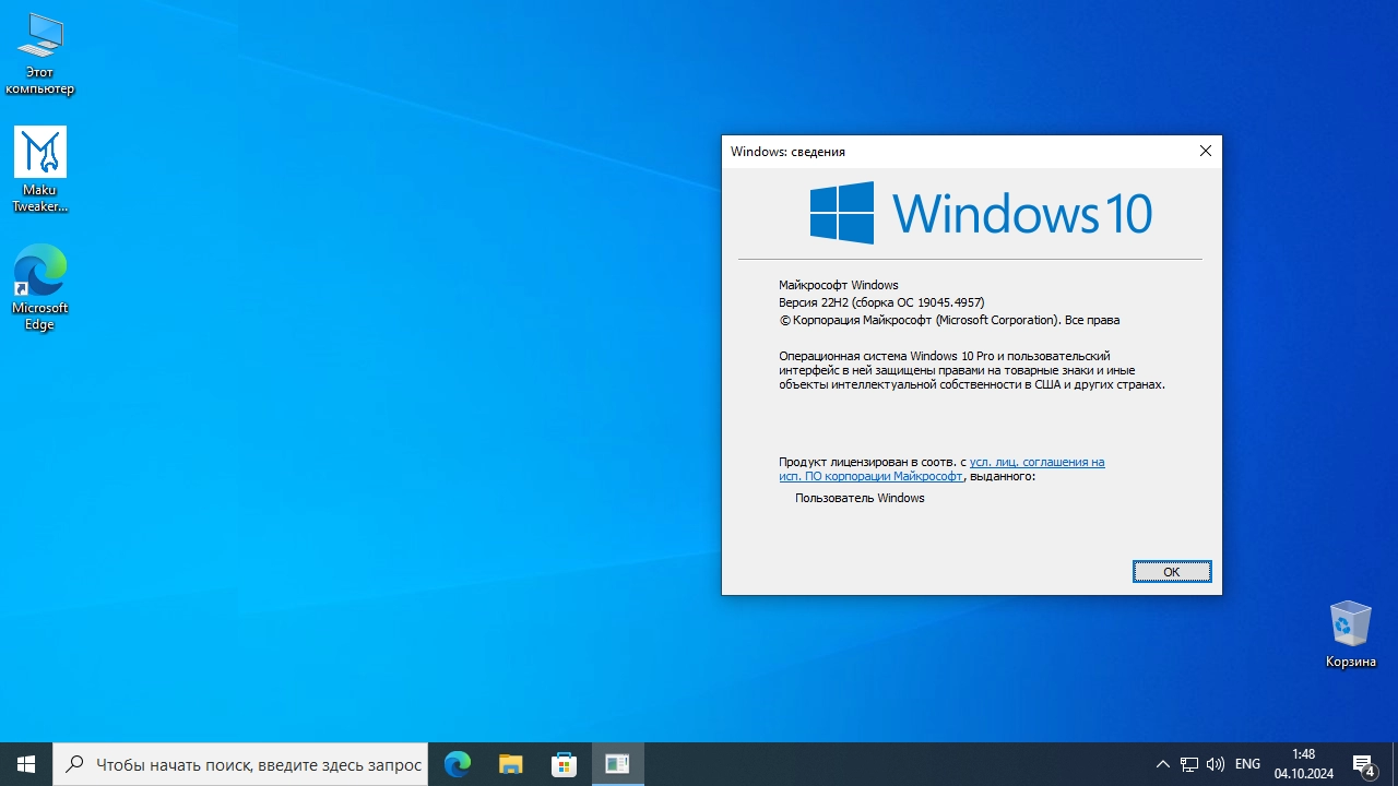 Скриншоты Windows 10 Professional 22H2 Build 19045.4957 MakuOS торрент: