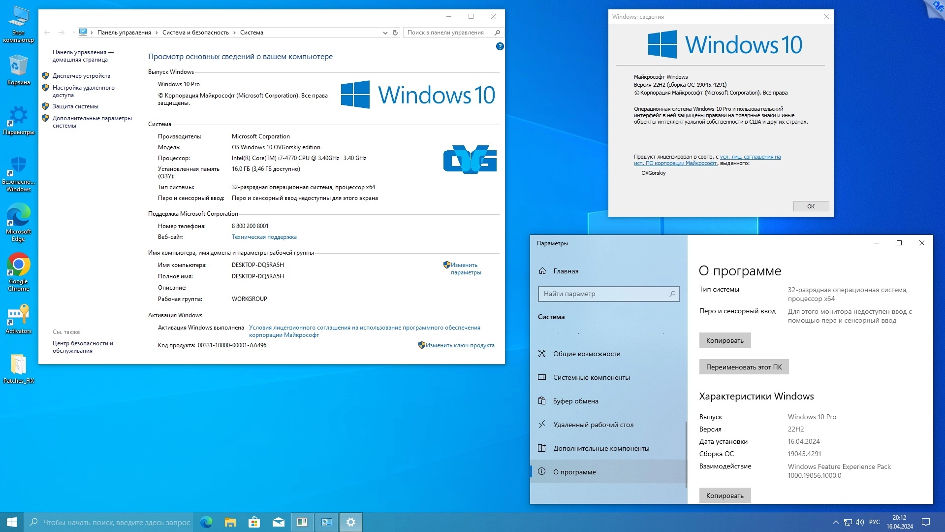 Windows 10 Professional VL x86-x64 22H2 RU by OVGorskiy 04.2024