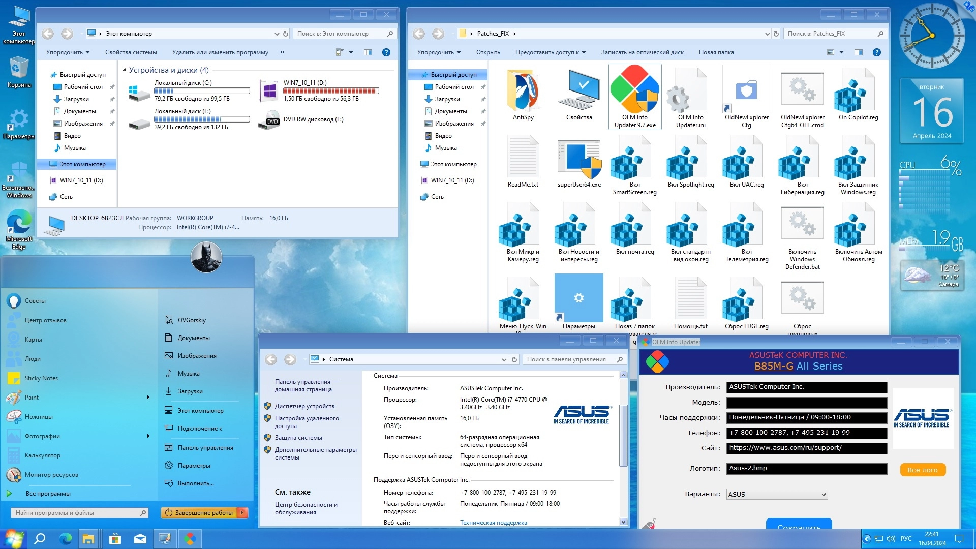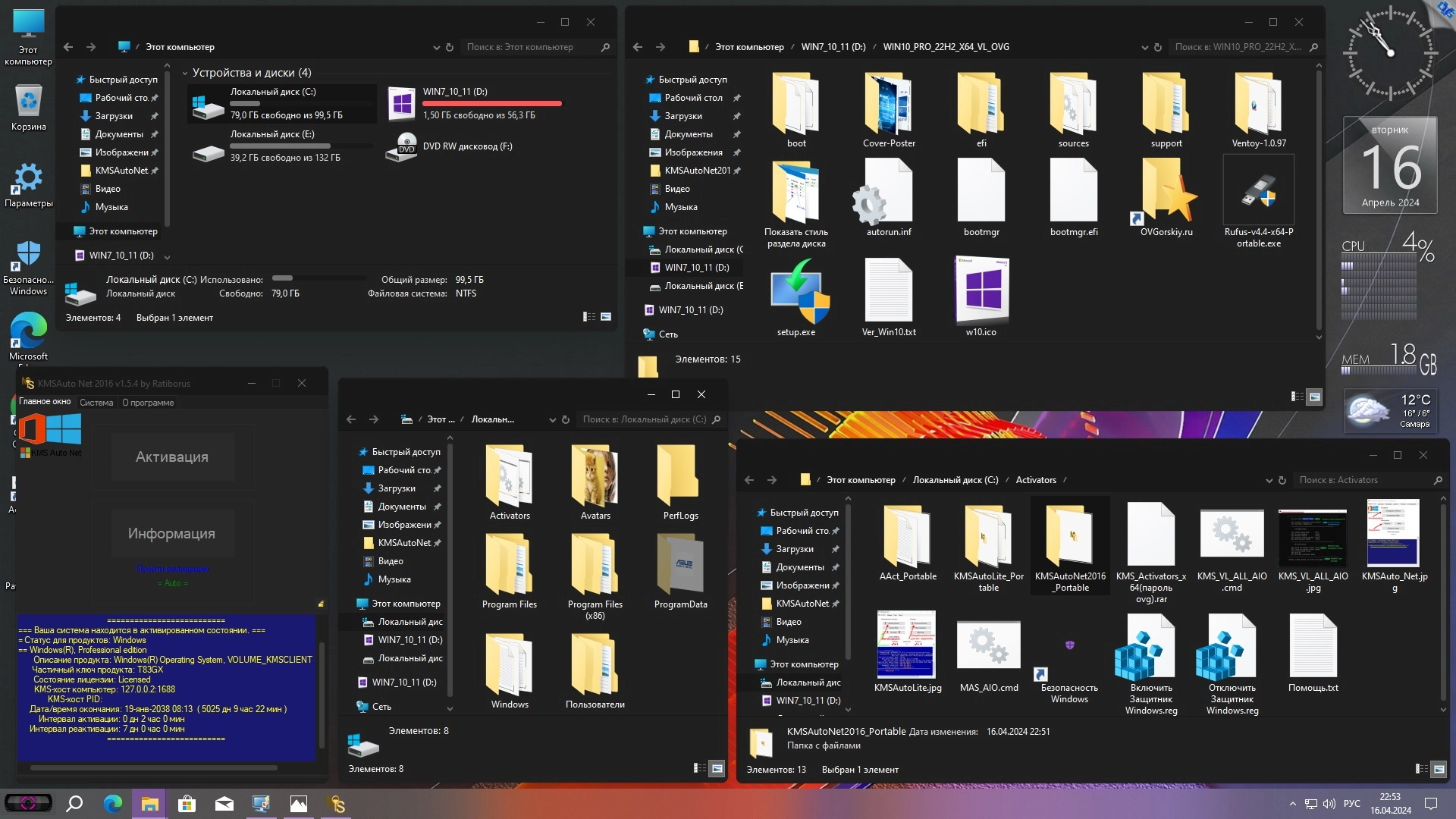 Windows 10 Professional VL x86-x64 22H2 RU by OVGorskiy 04.2024 Сборка предназначена для тех, кто желает оформить систему на свой вкус. Она даёт огромные возможности по оформлению системы от абсолютно оригинального до самого экзотического, в зависимости