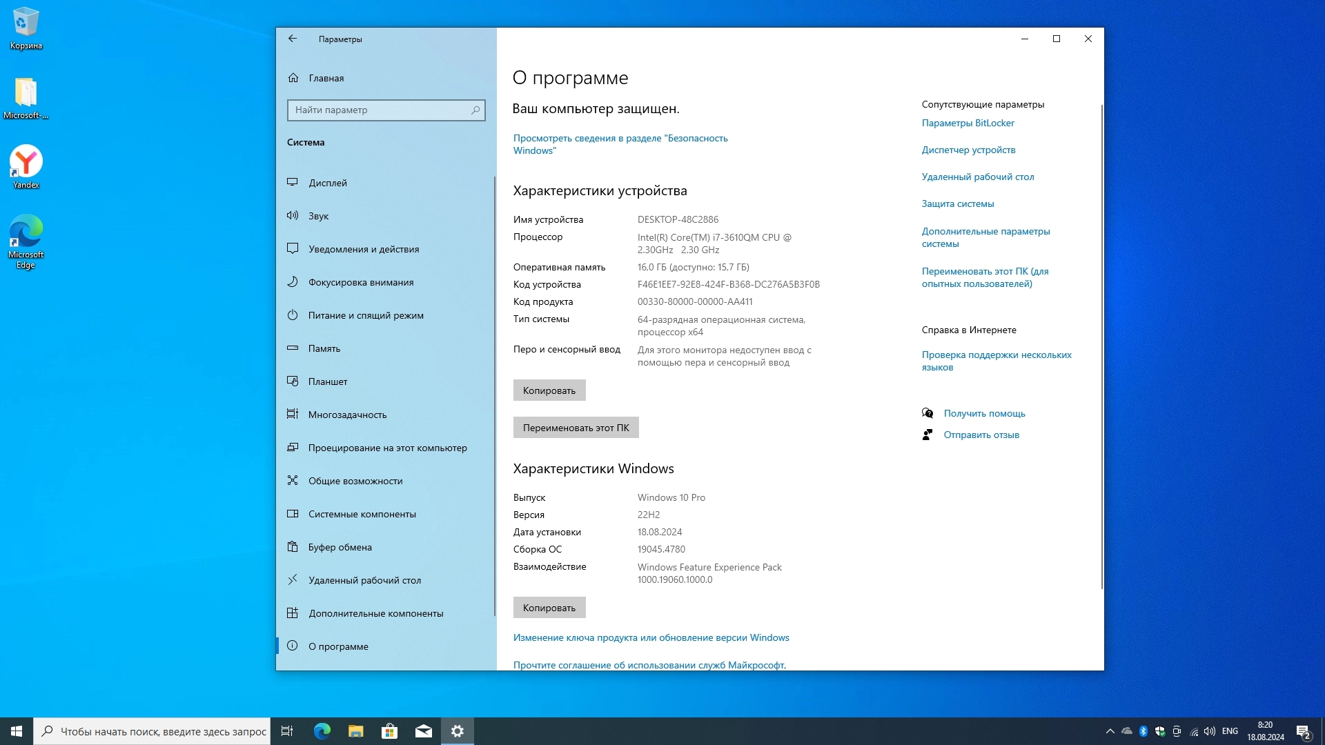 Windows 10 Русская (10in1) 22H2 10.0.19045.4780 x64 от BananaBrain Сборка сделана на основе оригинального образа MSDN. Интегрированы обновления по 13 августа 2024 года. Для системы: ОЗУ: 4 ГБ, место на жестком диске: 40 ГБ для 64-разрядной ОС. Процессор