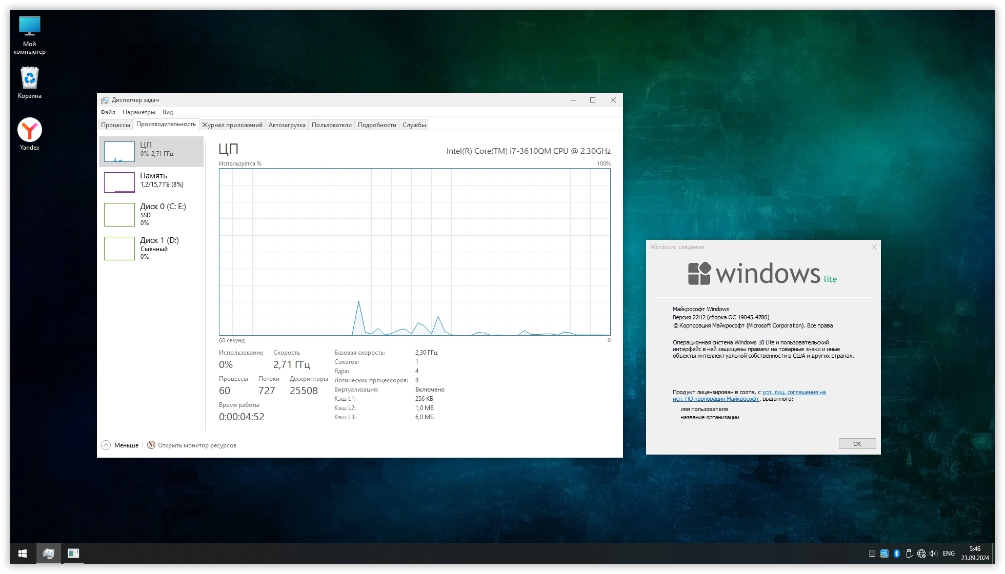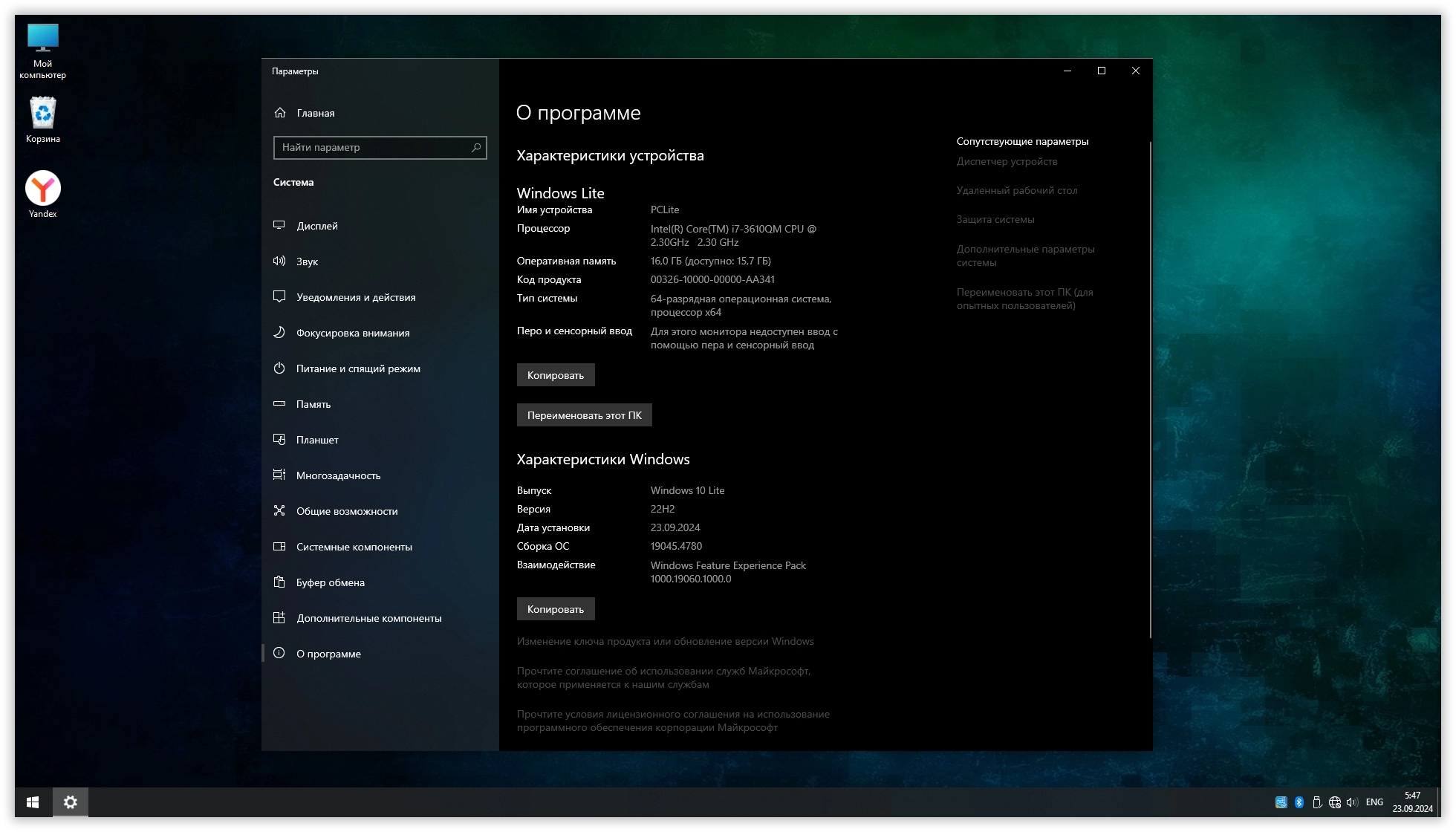 1. После загрузки на рабочий стол дождитесь автоматическую установку драйверов, если не было отключено настройка. 2. Если необходимоСкриншоты Windows 10 Русская Lite: