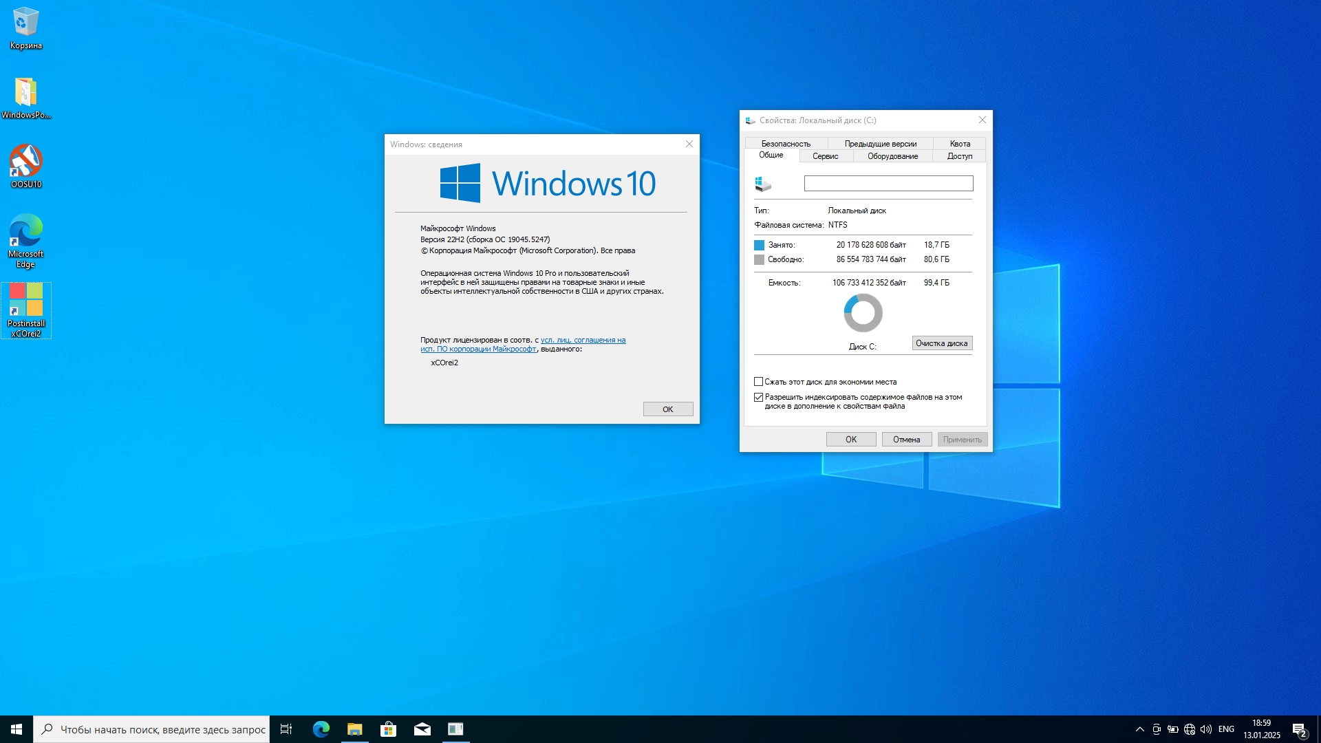 Данная версия Windows 10 Pro включает русский интерфейс по умолчанию и установлены последние обновления, удалив лишние приложения. С помощью "Windows Postinstall Manager xCOrei2" можно настроить систему под себя. Компьютер: