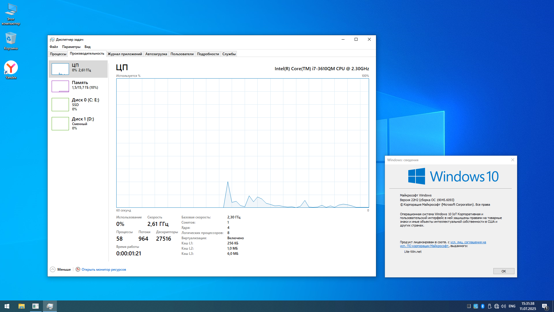 Windows 10 IoT Enterprise, версия 22H2 Build 19045.6093, была обновлена в июле 2025 года.