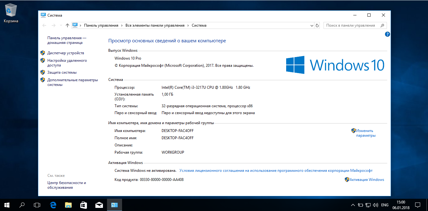 * Процессор: 1 гигагерц (ГГц) или больше.