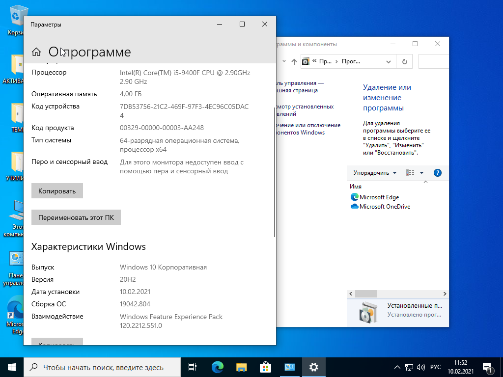 • Windows 10 Корпоративная • Windows 10 Pro
