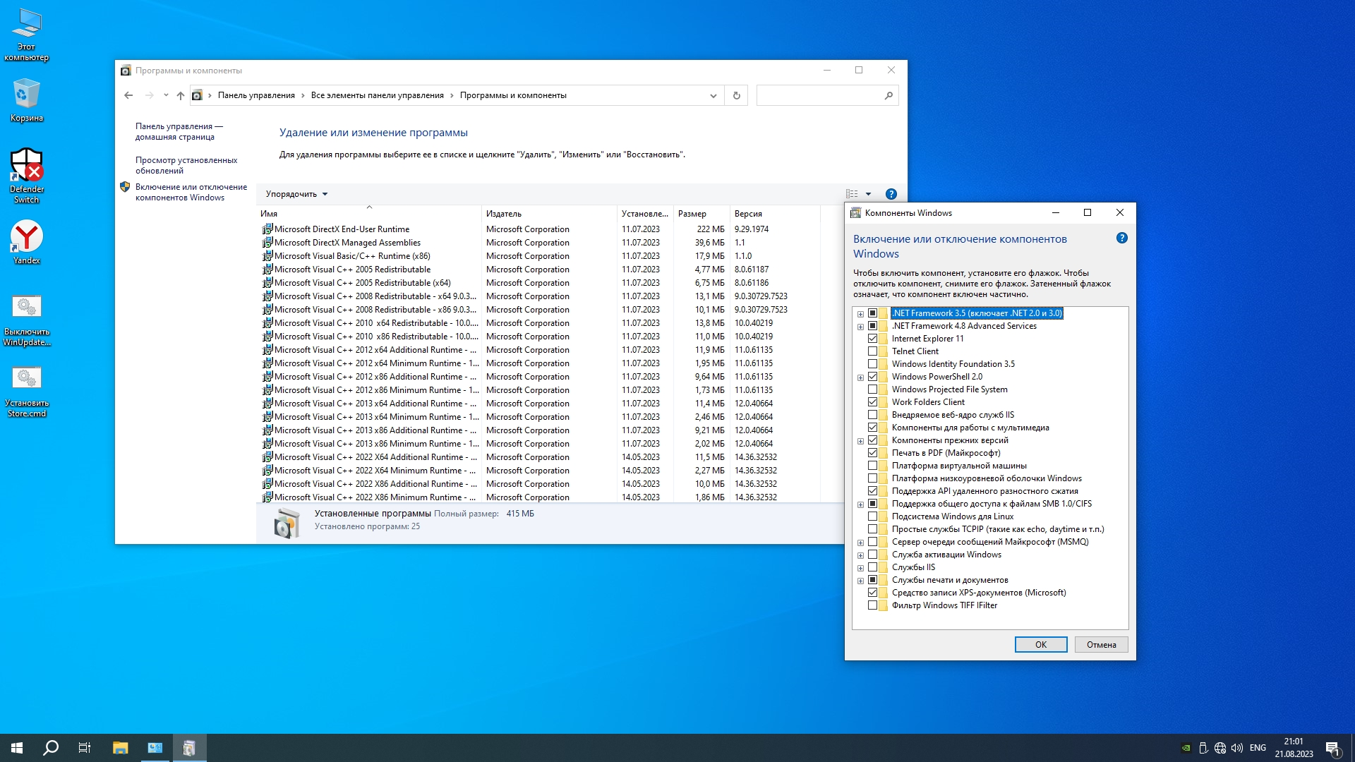 - такие как уведомления появления рекламы (Edge), автоматическая установка "рекомендованного ПО" от Майкрософт, системы управления учеткой Microsoft (Multimpoint Connector, Work-Folders-Client, Embedded) и многие другие.