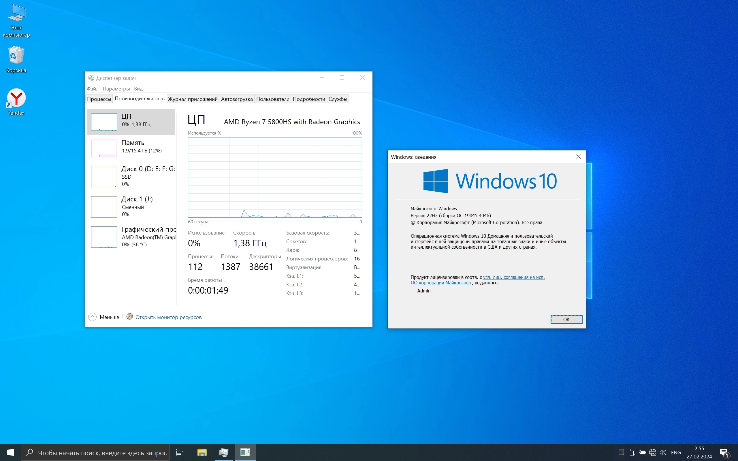 Качество: Windows 10 x64 Home Русская 22H2 19045.4046 Medium обеспечивает оптимальную работу системы, уменьшая лишнее, снимая ненужные функции и компоненты.
