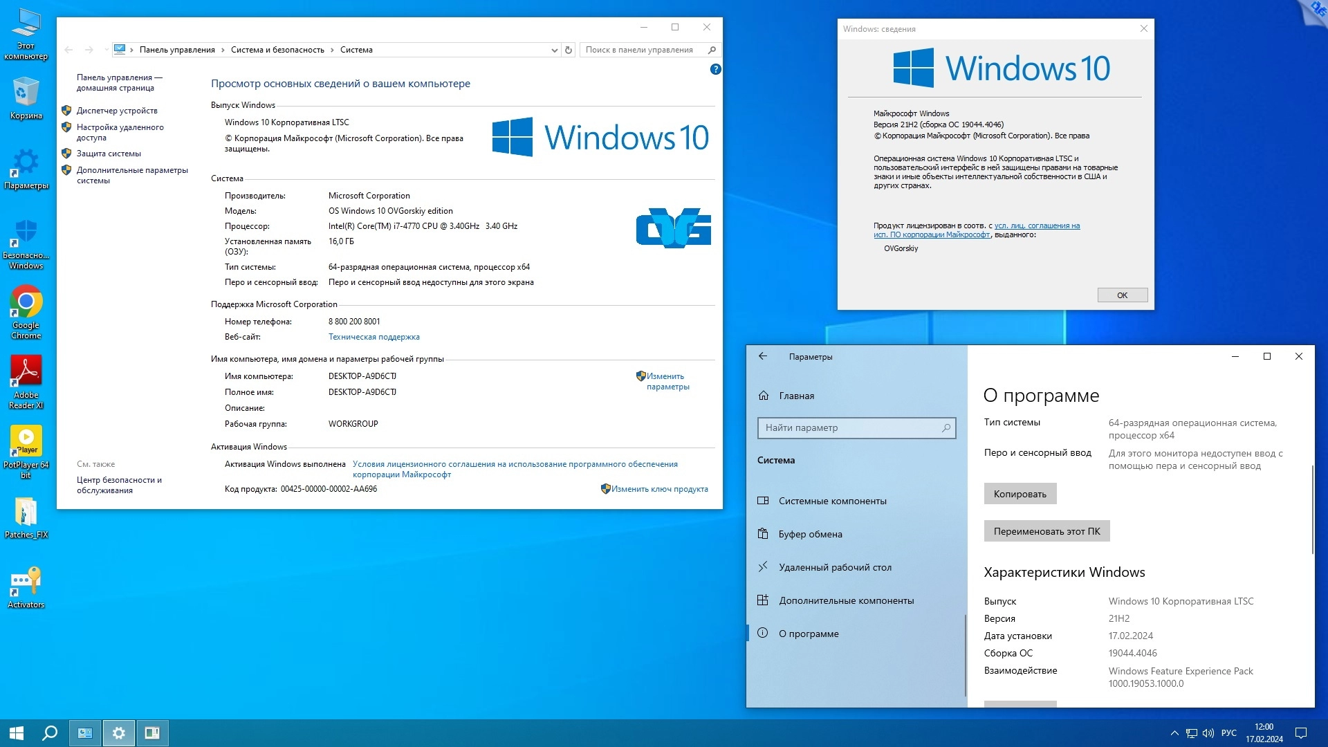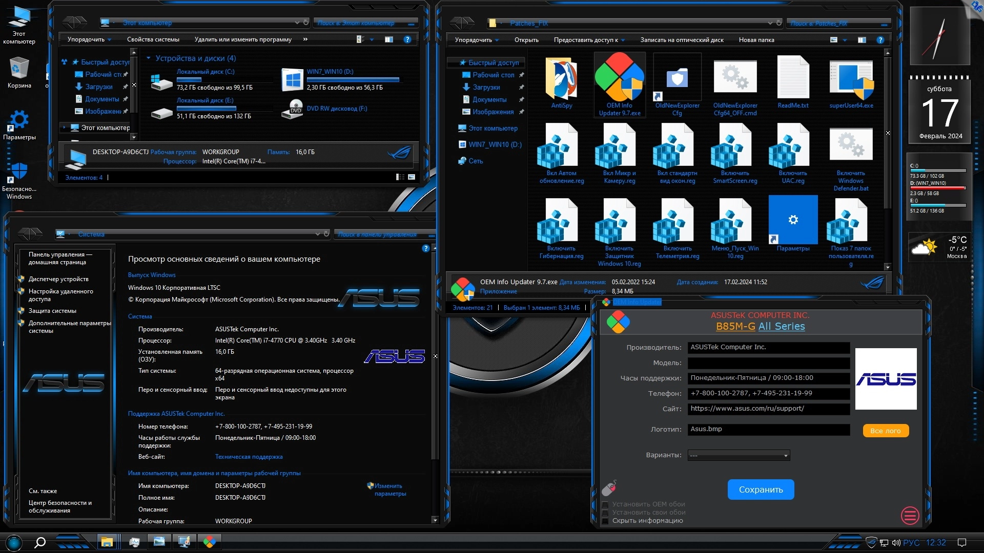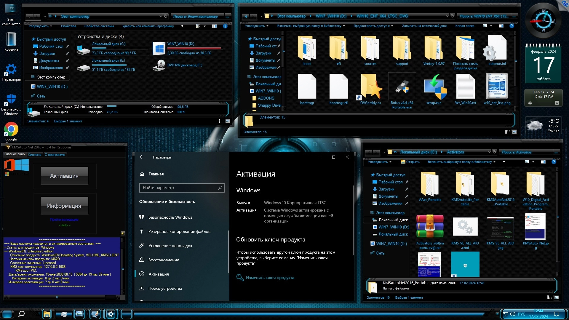 Компонована на основе корпоративной русской версии Windows 10 Enterprise (LTSC) от Microsoft. Сборка полностью установочная, с выбором параметров. Интегрированы обновления по 14 февраля 2024 года, дополнительные темы и гаджеты.