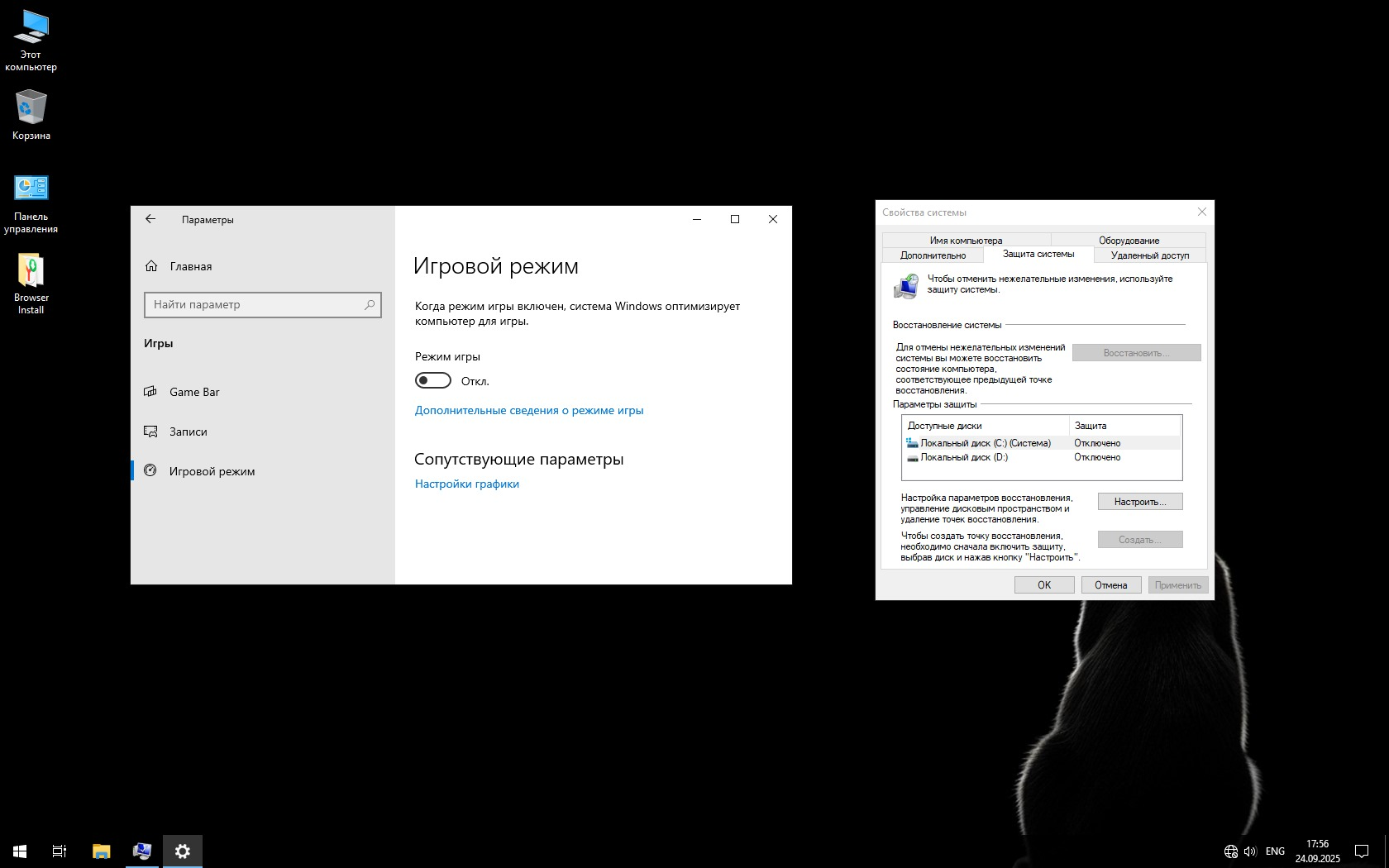 - Отключена телеметрия и защитные службы.