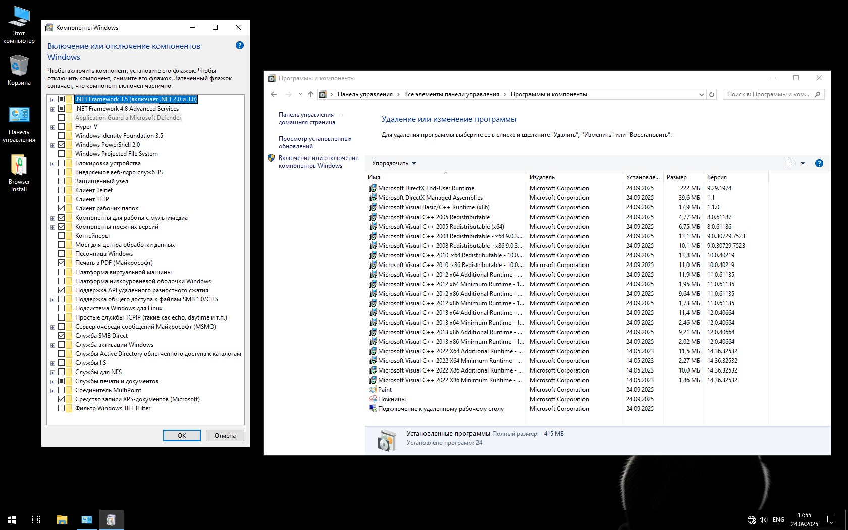 - Программы включены: Yandex браузер (если установлен).