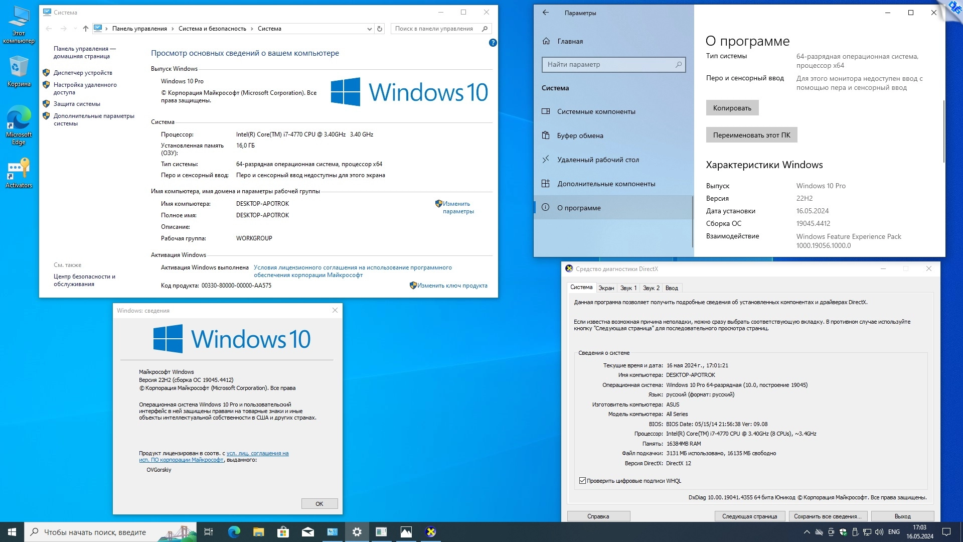Windows 10 x64 Ru 22H2 19045.4412 Upd 05.2024 by OVGorskiy