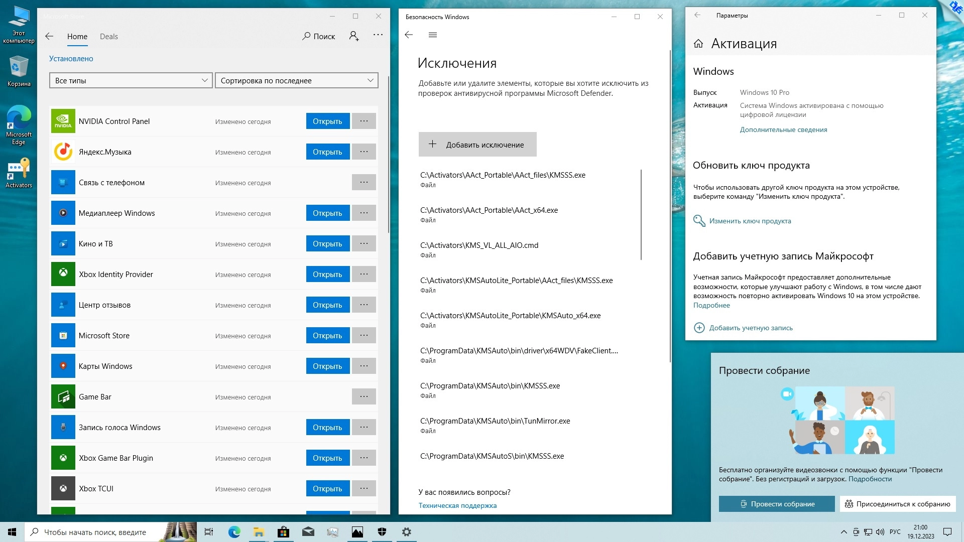 - Папка с активаторами и сама атрибутная папка внесены в исключения