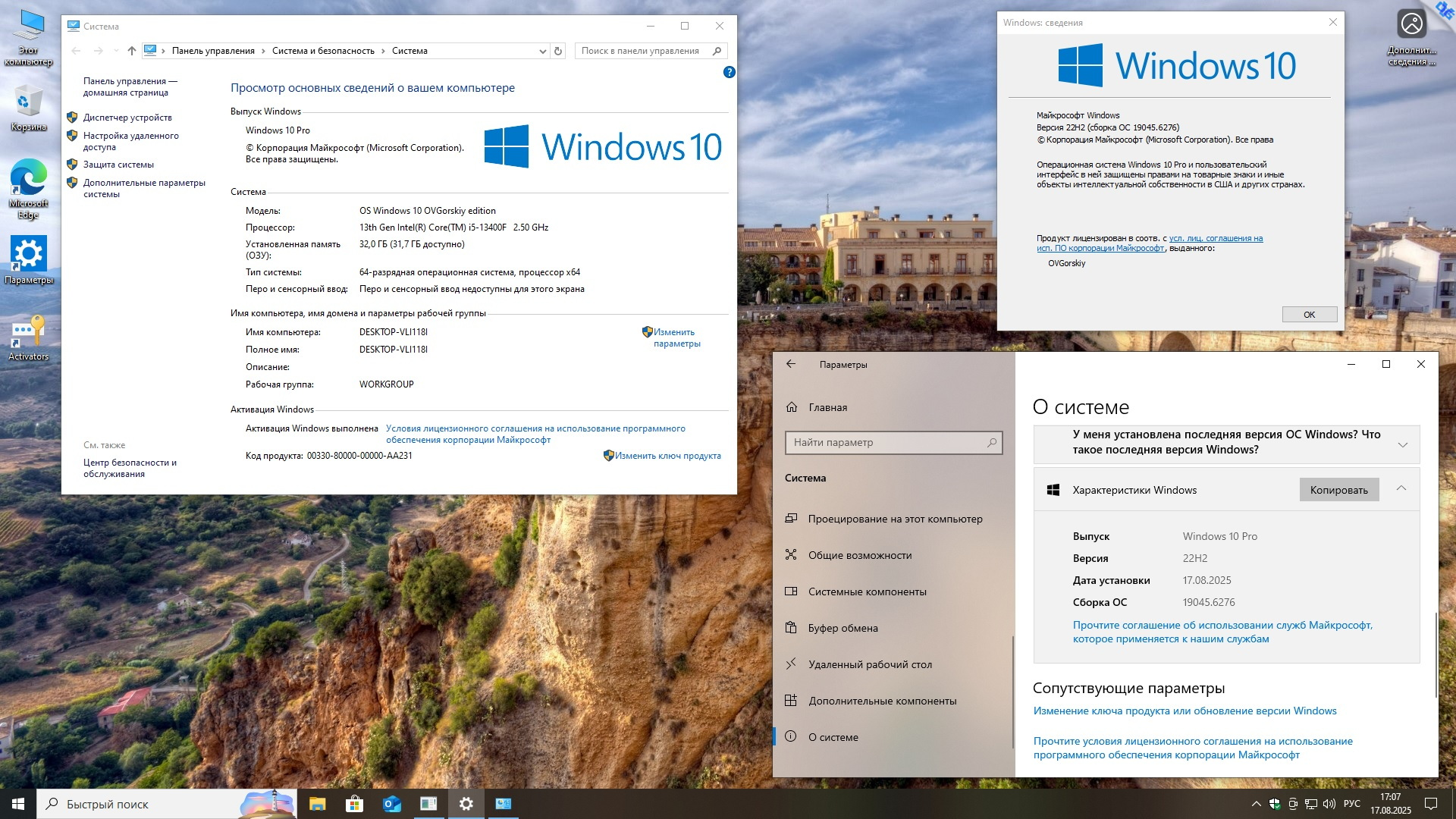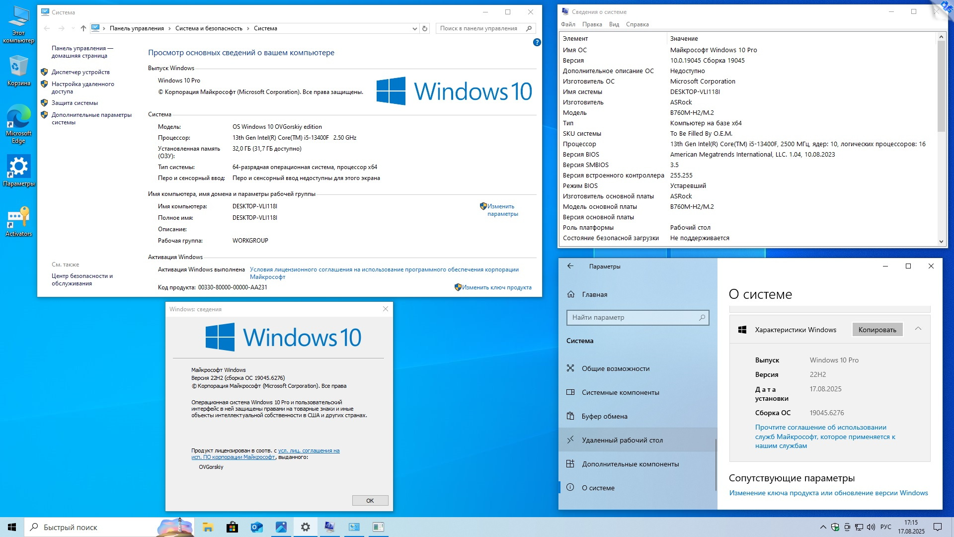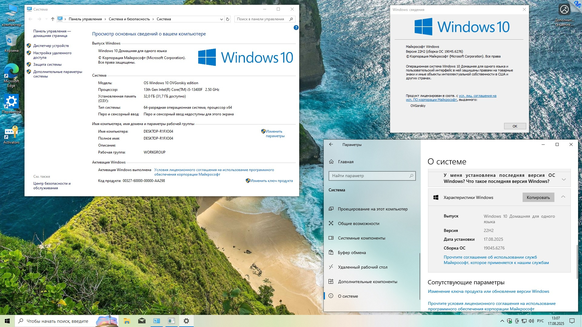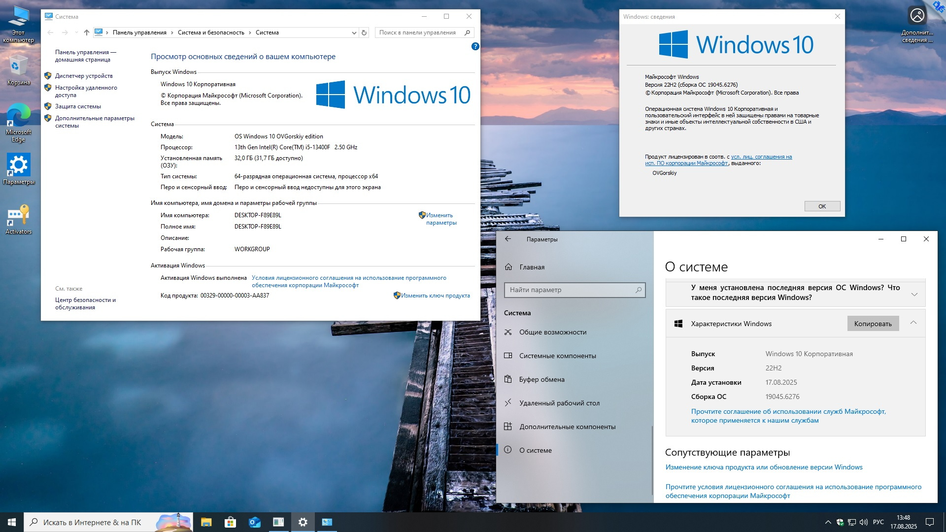 Windows 10 x64 Русская 22H2 4in1 Upd 08.2025 by OVGorskiy