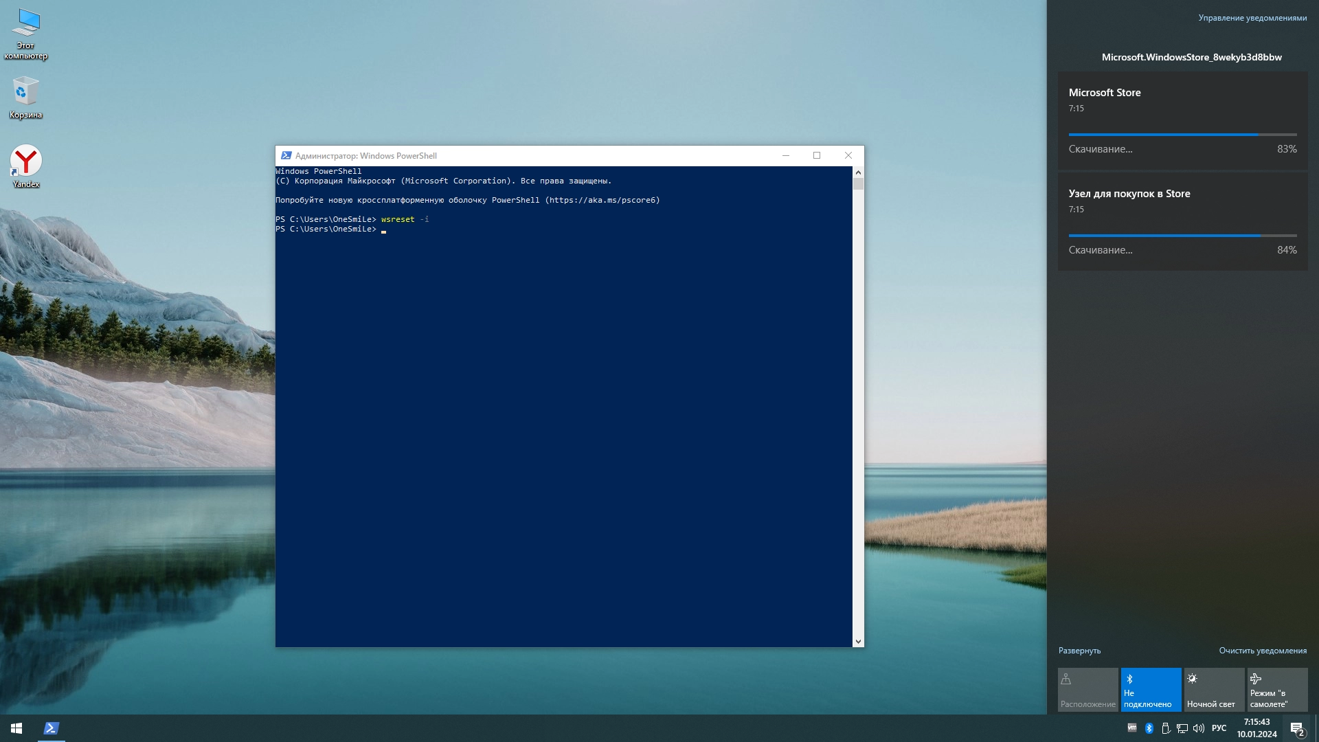 При включенном интернете в PowerShell от имени администратора выполняем команду wsreset -i для магазина и установки Xbox.