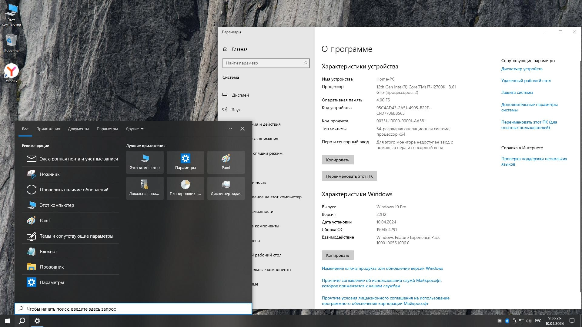 Windows 10 x64 Русская 19045.4291 Сборка сделана из оригинальных образов Windows 10 с апрельского обновления. Модерн приложения удалены, поиск работает (значок скрыт). 2 ГБ ОЗУ для 64-разрядных систем 10 ГБ жесткого диска для 64-разрядных систем