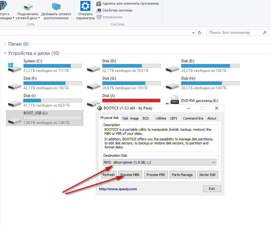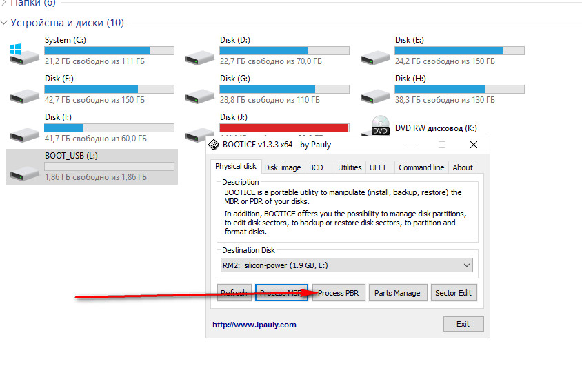 2. Далее создаем загрузочный сектор флешки как показано на скринах в разделе "Дополнительные скриншоты".