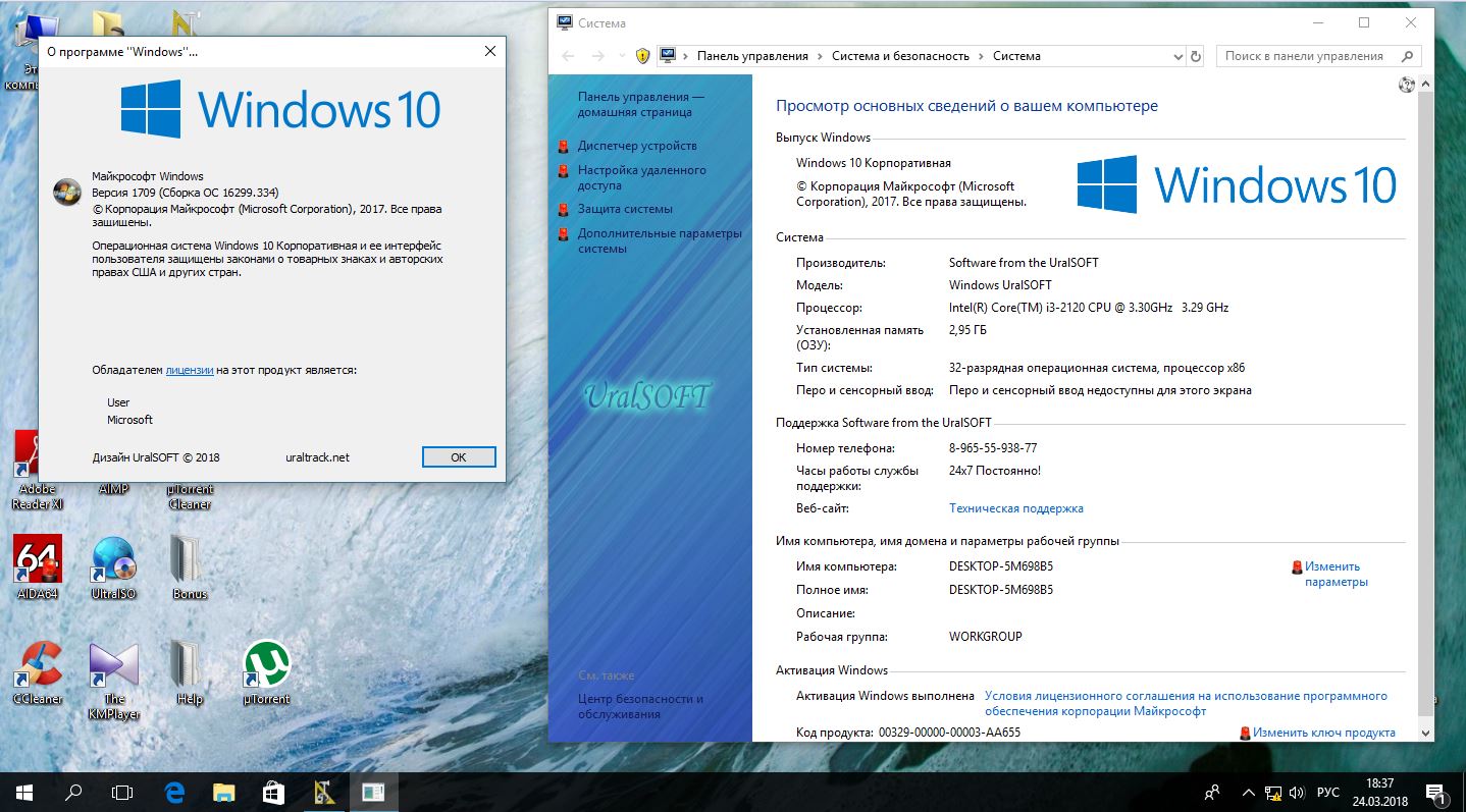Windows 10 x86x64 Enterprise 16299.334 (Uralsoft) торрент, изменения: