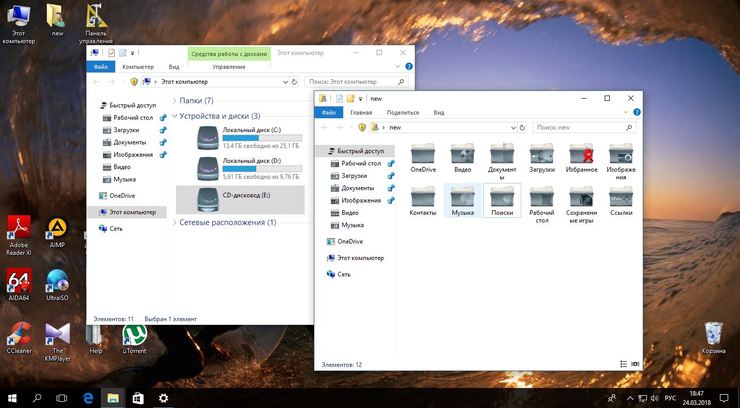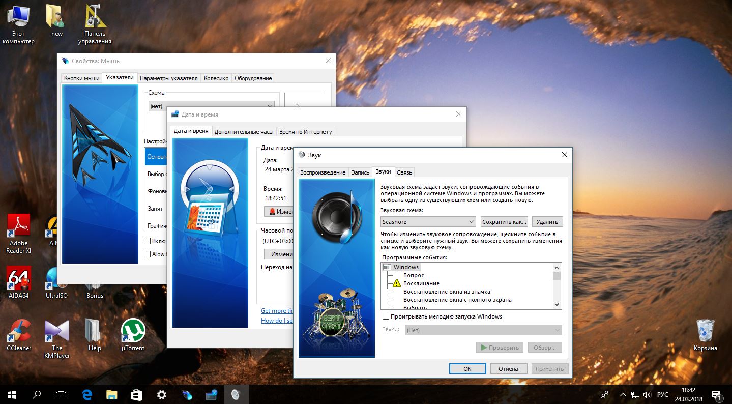 Изменен вид значков, папок, ярлыков.Службы оставлены по умолчанию, все на усмотрение конечного пользователя.