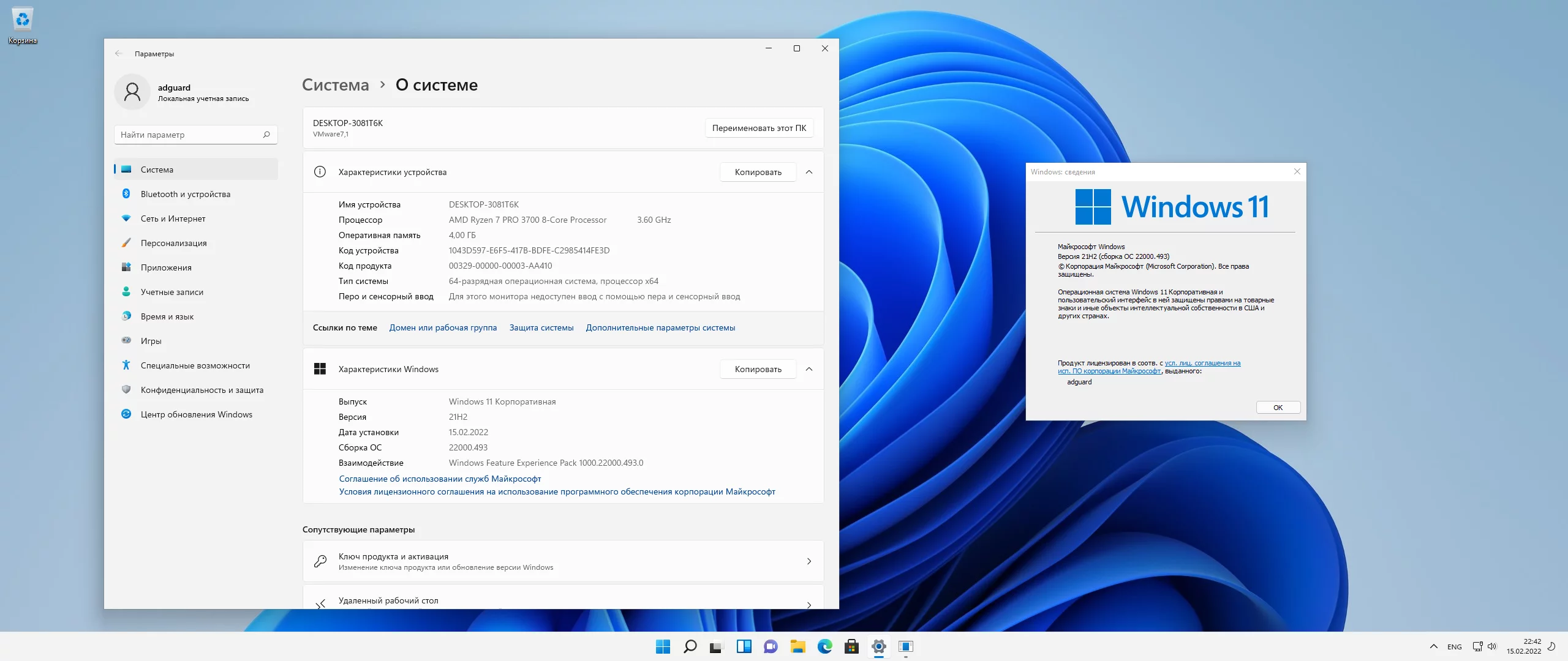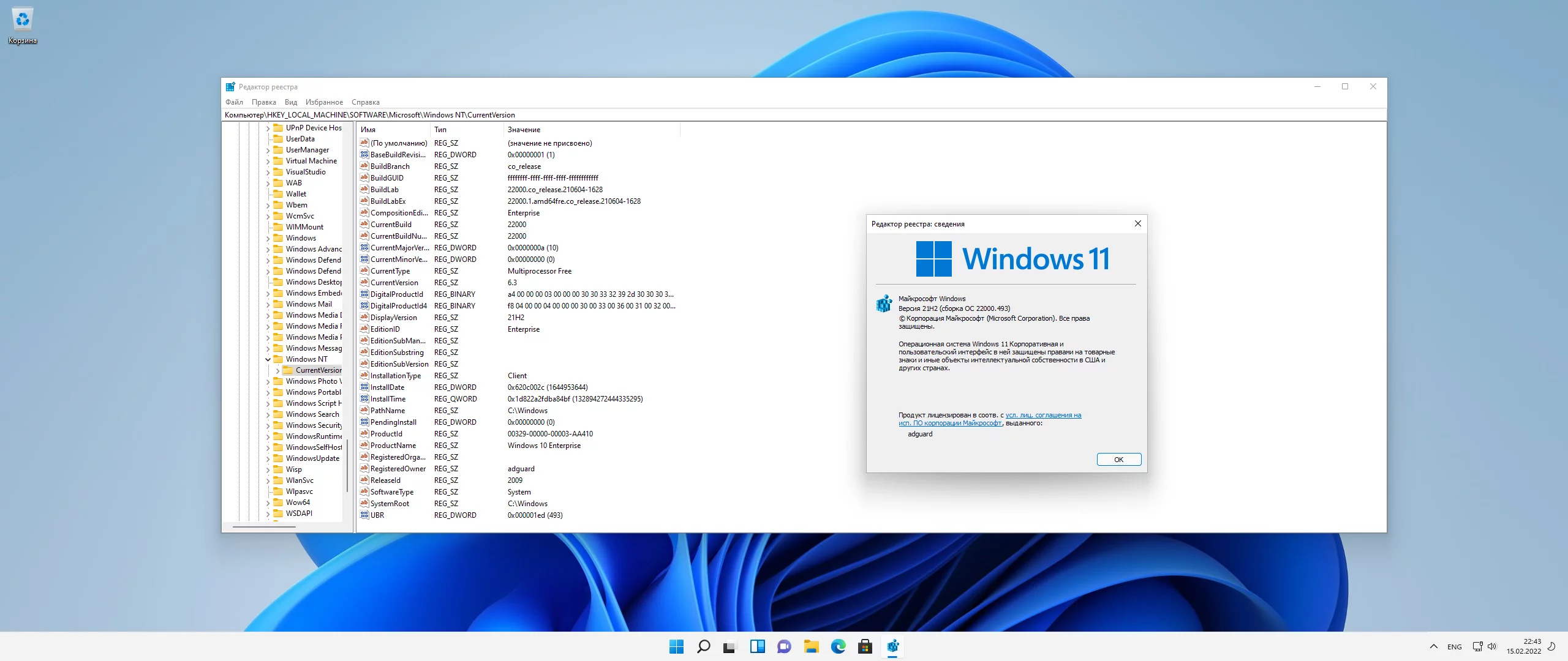 Windows 11 [10.0.22000.493], Version 21H2 (Updated February 2022)