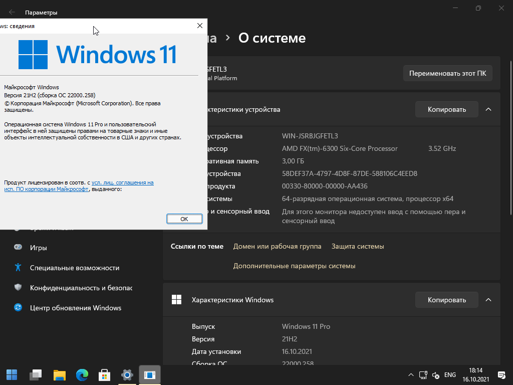 Технические параметры: Windows 11 2021.10.16 с обновлениями по октябрь 2021, основанный на оригинальном английском образе и интегрированной системной библиотекой;Office 2019 Pro Plus x86 для выбора пользователя (можно установить или не установить Office)