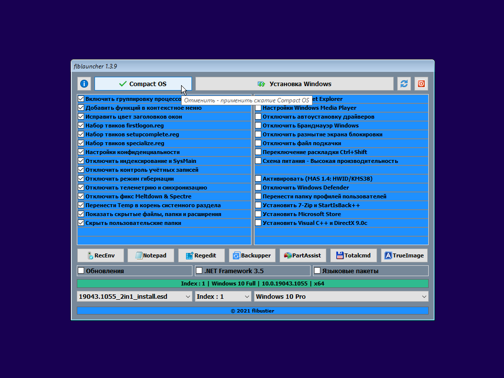 Compact OS - это не версия сборки, это применить/отменить сжатие к выбранному индексу.