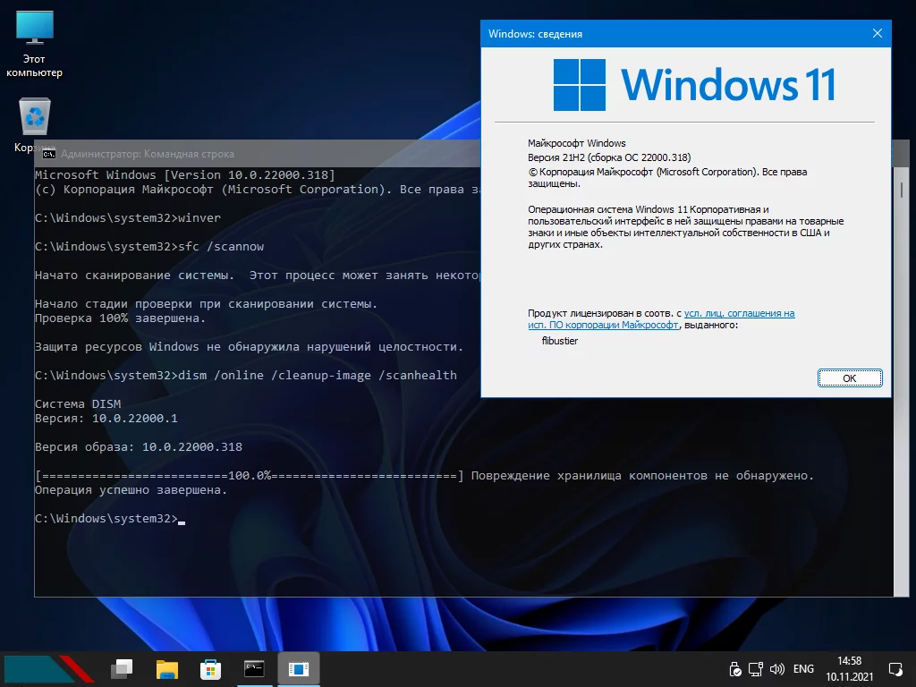 Скриншоты Windows 11 21H2 Compact & FULL x64 [22000.318] by Flibustier торрент: