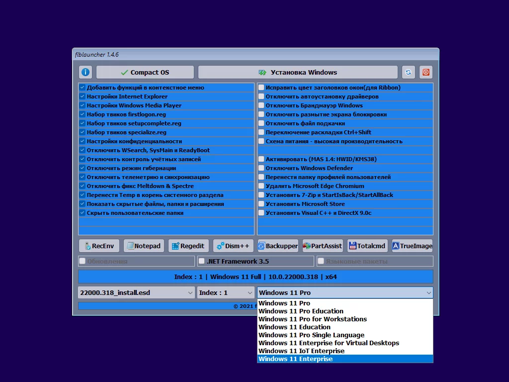 Windows 11 21H2 Compact & FULL x64 [22000.318] by Flibustier торрент, изменения: